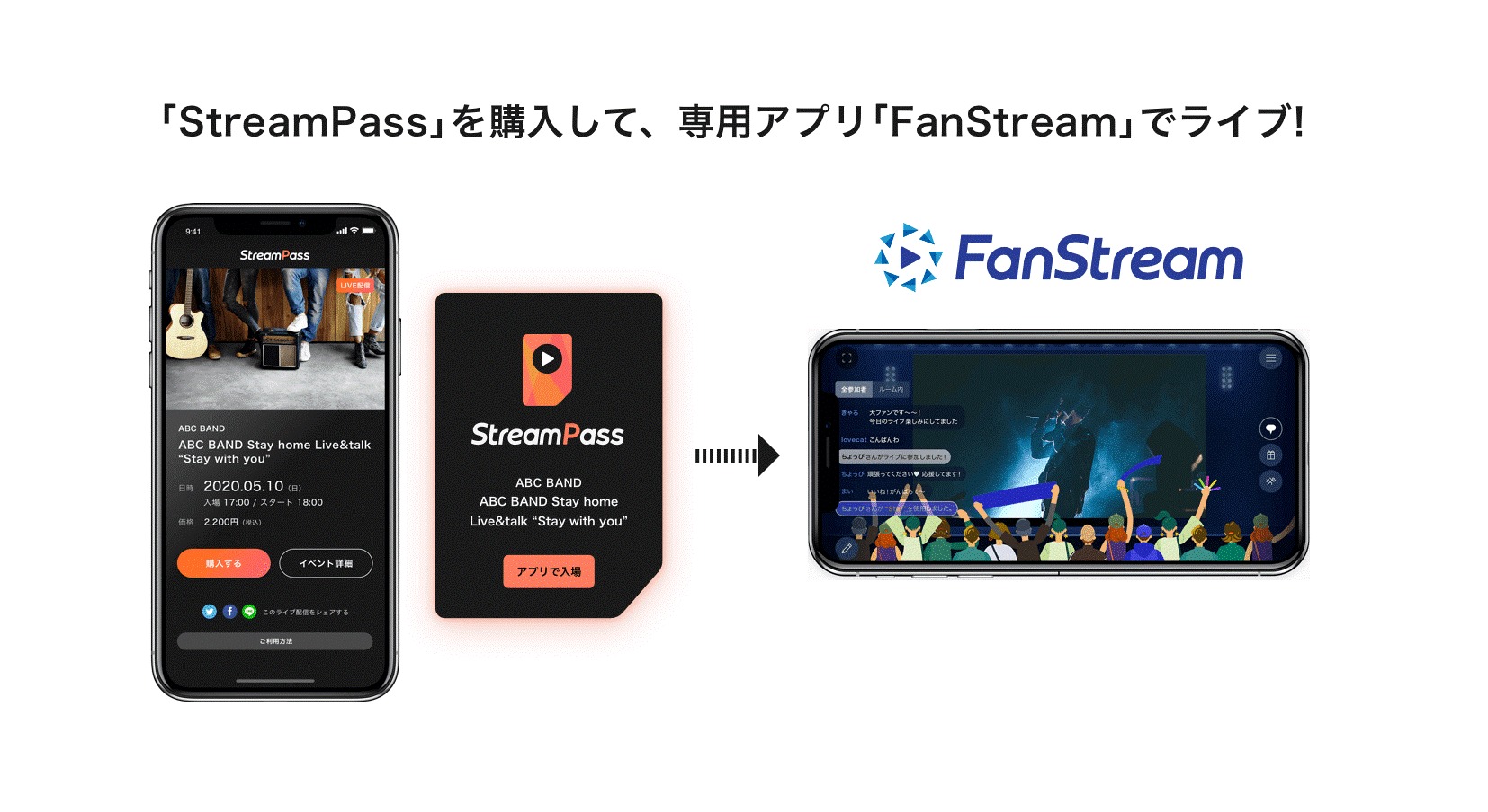 視聴専用アプリ「FanStream」は、生配信を観ながらコメントやギフティングでアーティストの応援ができる機能を搭載。ライブ中もどんどん応援したい。