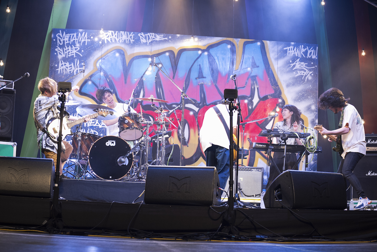 ビバラ皆勤賞の埼玉県出身バンド・ACIDMANは、今年は大木伸夫(Vo/Gt)単独での出演。自己紹介後、「VIVA LA ROCKの火を灯し続けてくれて、そして僕に声をかけてくれてありがとうございます」と丁寧に挨拶をしてから演奏を始めた。本人曰く、「すみません、こう見えて緊張してるんです、ガクガクなんです」とのことだったが、歌もギターも安定感抜群。終盤に行くにつれて和音が重厚になっていく「FREE STAR」から一気に引き込まれたし、ボサノバテイストの「赤橙」も心地よかった。3曲目には、6月にリリースされた新曲「灰色の街」を披露。曲自体は3年前からあったそうだが、唄われる言葉一つひとつに思いを馳せずにいられなかった。