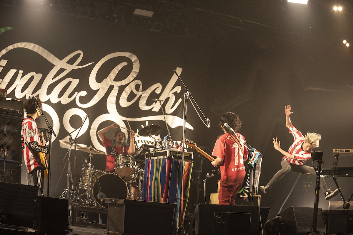 「板の上の魔物」から始まるセットリストの時点で気合いの入り様が伝わってきたCreepy Nutsの熱いライブ、そしてリモート演奏に挑戦した10-FEETのZoomトークを経て、3日間のラストを飾るthe telephonesのライブへ。埼玉県北浦和出身の彼らはビバラと堅い絆で結ばれたバンドだ。ミラーボールがまわるなか、ラブ&ピースばりのでっかさで響きわたるラブ&ディスコ。新曲(「Do the DISCO」)のタイトルに久々に「DISCO」というワードが入っているのも感慨深い。石毛はブリッジでギターをプレイしながら「画面越しに同じポーズしようぜ、みんなー!」と無理難題をふっかけ、背中にマジックで「倍返し」と書いた(同じ時間帯にテレビで『半沢直樹』が放送されていたため)岡本 伸明(Syn)は、フェイスシールド着用でフロアにいるスタッフの手に消毒液をプッシュしてまわる。そんなカオスな光景も、「俺たちは全力で音楽やるしかできない」という言葉を体現した演奏も、全部ひっくるめて最高にハッピーな時間だった。「こんな楽しいのはスタッフのみんなのおかげだぜー! ビバラロックを開催したことは決して間違いではない!」という石毛の絶叫により、終了。