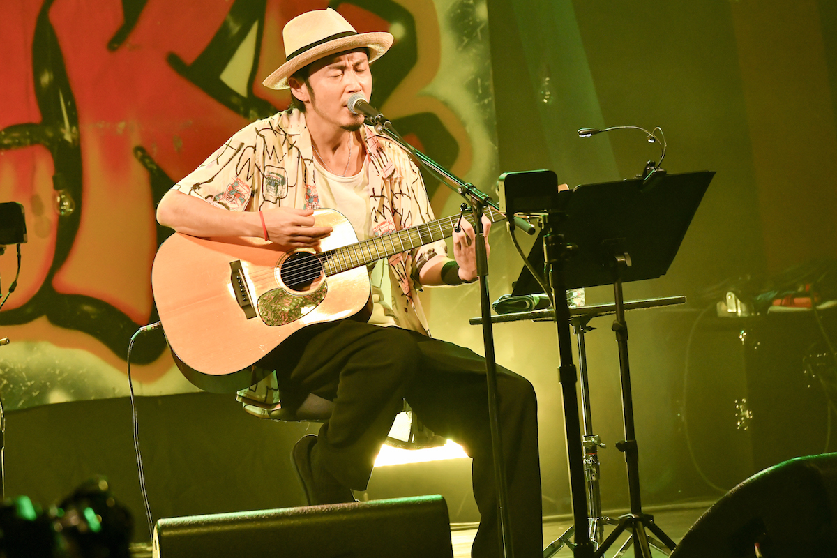 19時半に出演したスガ シカオは、サポートのFUYU(Dr)と2人で登場。こちらも珍しい編成だが、弾き語りツアー中に自粛期間に入ったスガは、久々のライブで誰かと鳴らすことによって生まれるグルーヴを味わいたかったからこそ、この編成で出演することに決めたそうだ。実際この編成だと、2人の呼吸がそのまま演奏に乗っかっている感じがあり、特有の生々しさがある。中盤に一人弾き語りで演奏した「Progress」、<“あと一歩だけ、前に 進もう”>というメッセージに勇気をもらった人も少なくなかったのでは。MCでは、サンプリングした拍手の音源を鳴らしながら「嘘だと分かっててもこれがなきゃね~」と笑う場面も。