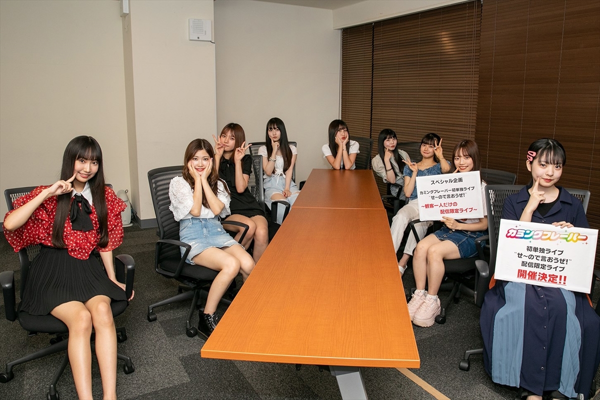 8月11日にはカミングフレーバー9名全員が集まりShowroomを配信。ライブの開催と、スペシャル企画として抽選で選ばれた1名だけが会場で観られる「ライブ参加抽選付き視聴券」、ライブ後のエンドロールに名前が掲載される「クレジット付き視聴券」の販売を発表した。
