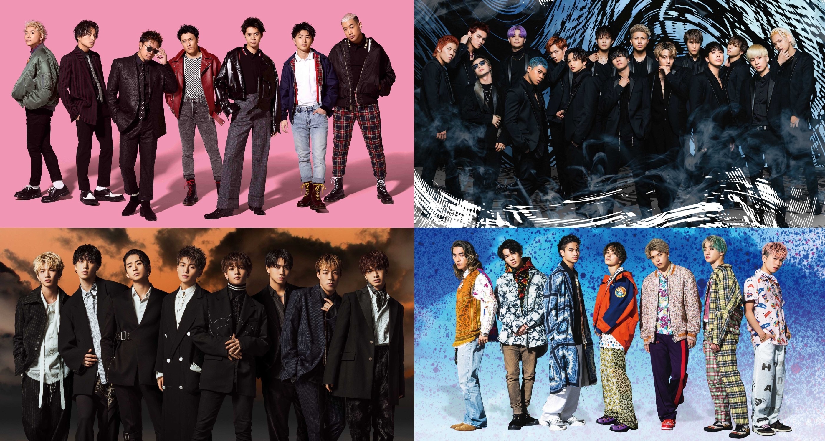 左上から時計回りに、GENERATIONS、THE RAMPAGE、BALLISTIK BOYZ、FANTASTICS