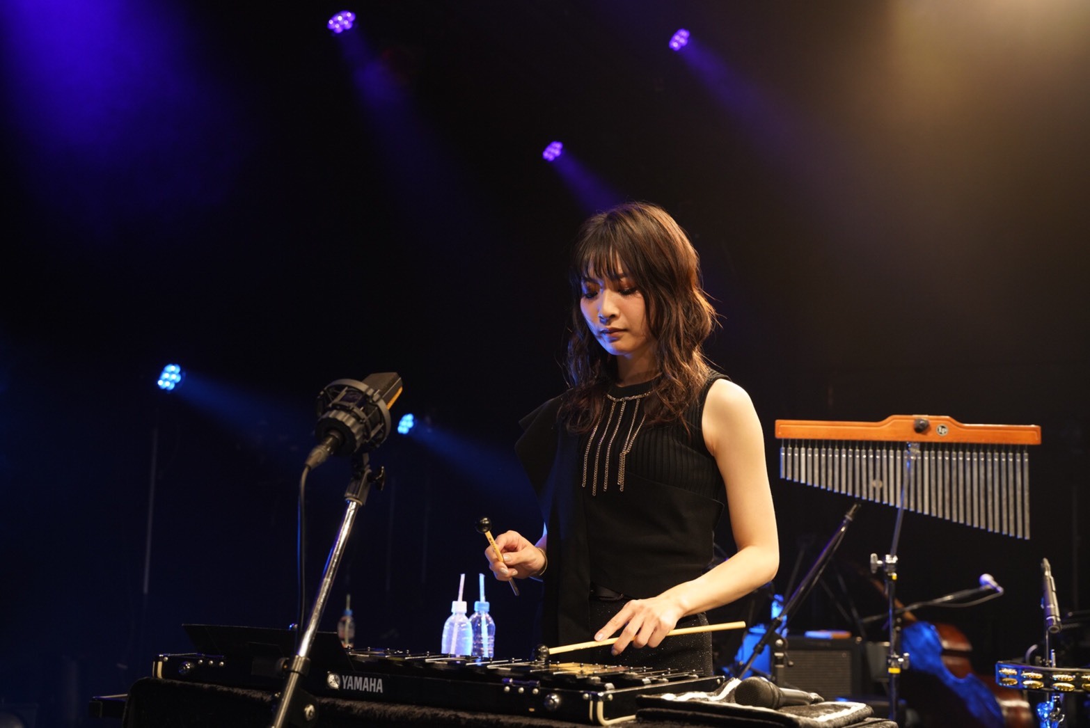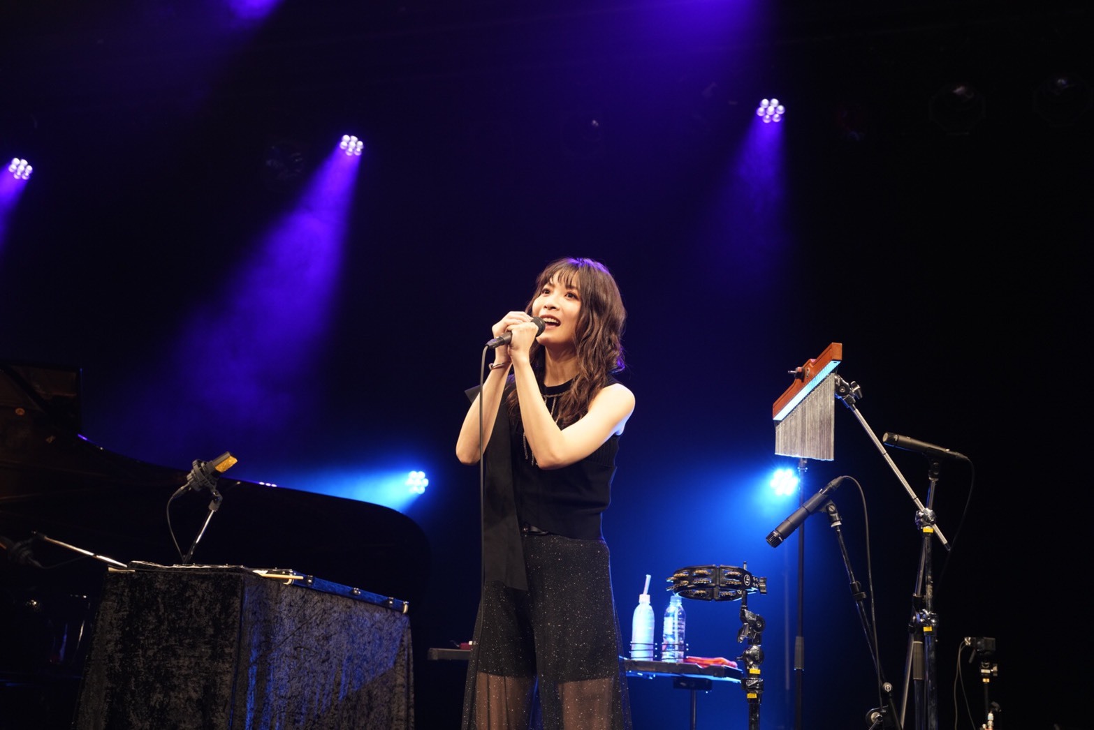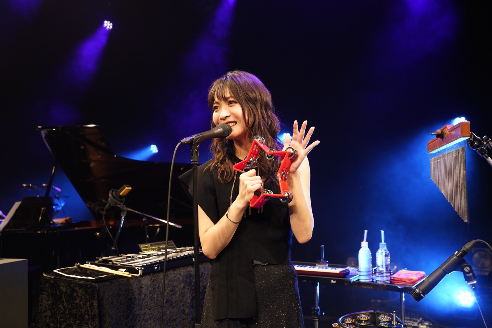 ジャズ色の強いナンバー「スピカ」で一気に独自の空気感をつくり出し、星形のタンバリンを手に「M-Revolution」や、May'n自身作詞曲「バースデイ! 〜PEACE of SMILE」など、画面越しでも思わず一緒に動いてしまうライブ感あふれるナンバーに、コメントも盛り上がり、時折自身も様々な楽器を演奏しながら躍動感あふれるライブを披露した。