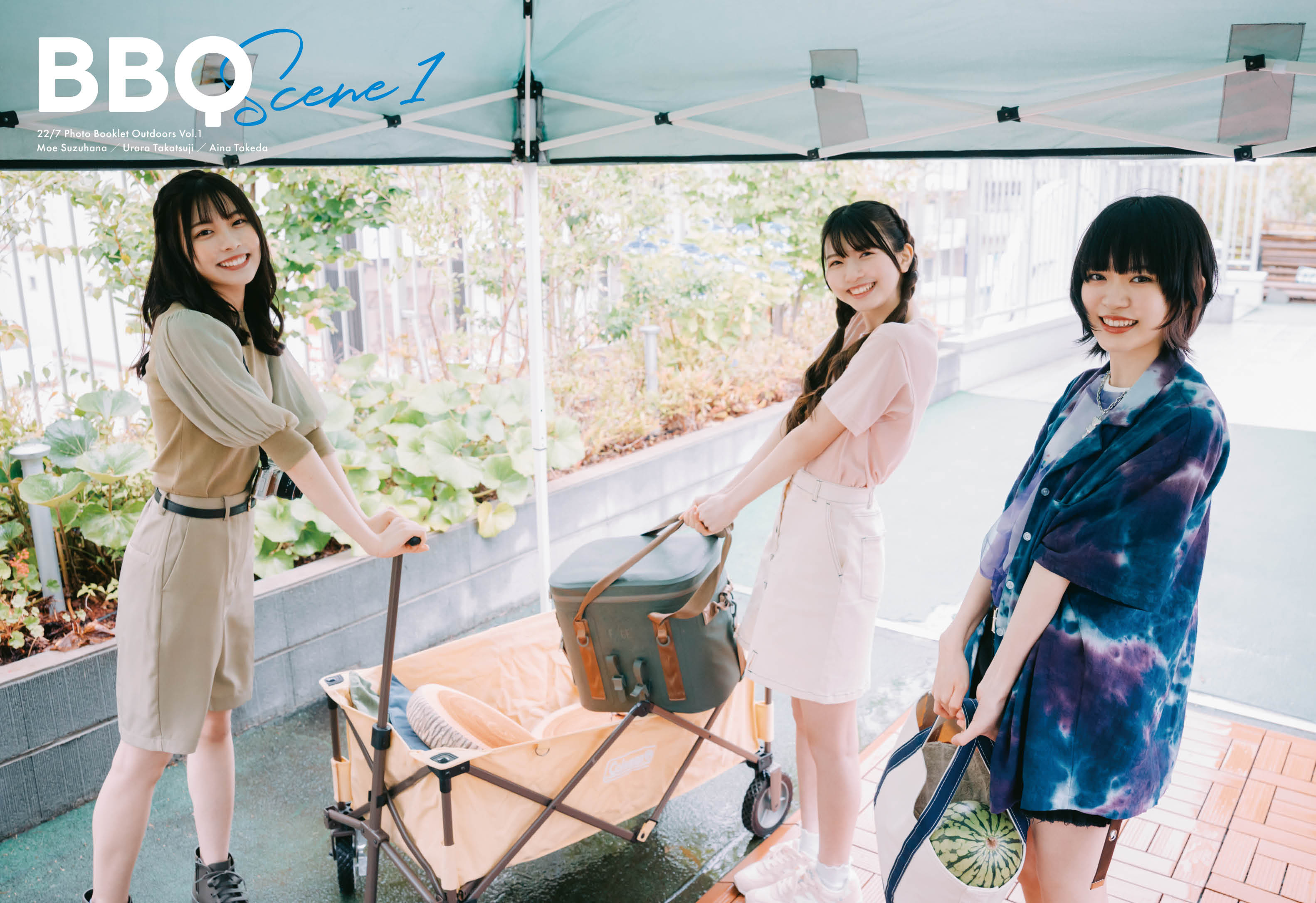 さらに、Blu-ray&DVD Vol.6 完全生産限定版特典として『22/7フォトブックレット』が封入される。初解禁となる『22/7フォトブックレット』今回のテーマは、「Outdoors」。涼花 萌、 高辻 麗、 武田愛奈、3人のグランピングの様子が収録されている。そのサンプルショットが公開された。