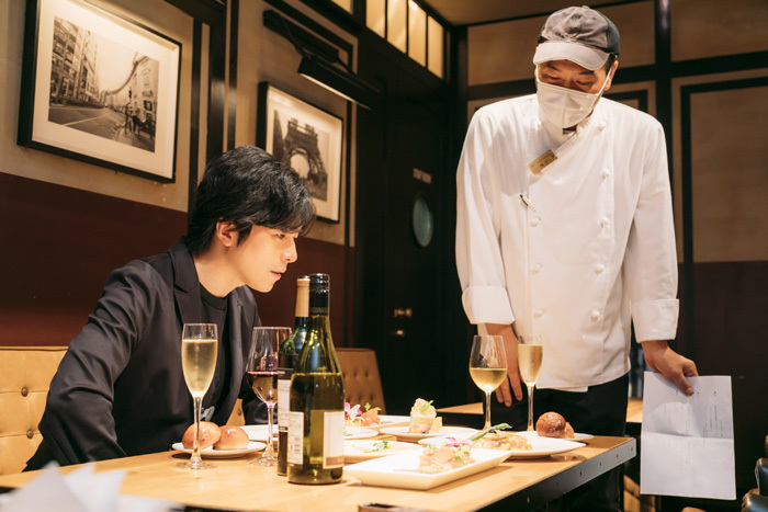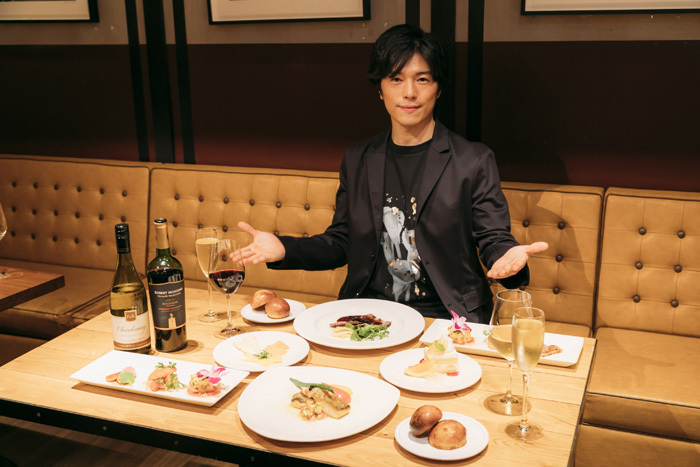 普段はカジュアルな食事を提供する同店だが、前菜からサマートリュフやキャビアなどの高級食材を用いたメインディッシュ、チーズ、デザート。さらに、料理長お手製の練乳入りのパンまで、公演のために考え抜かれた逸品がずらり。テイスティング用のワインは、国内最大手のメーカー「メルシャン」(東京都中野区)が曲からイメージをふくらませたシャンパン、白ワイン、赤ワインを用意。「お酒の中でもワインが一番好き」という大井は、「楽しみです」と期待に胸を膨らませていた。