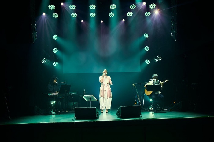2012年以来実に8年ぶりとなる今回のライブは、東京・Veats Shibuyaより配信され、「渚のはいから人魚」「The Stardust Memory」「夜明けのMEW」「あなたに会えてよかった」「優しい雨」など懐かしのヒット曲から、最新アルバム収録曲「100%」、そして岩井俊二監督の最新映画『8日で死んだ怪獣の12日の物語』の主題歌として、今年33年ぶりにセルフカバーした「連れてってファンタァジェン」まで、アコースティック編成による、全10曲約50分のプレミアムなライブとなった。