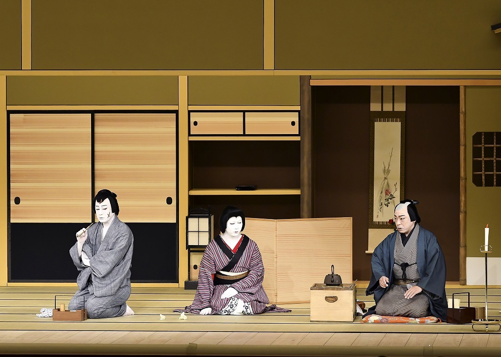 『与話情浮名横櫛』(右より)和泉屋多左衛門=市川中車、妾お富=中村児太郎、切られ与三郎=松本幸四郎 (C)松竹