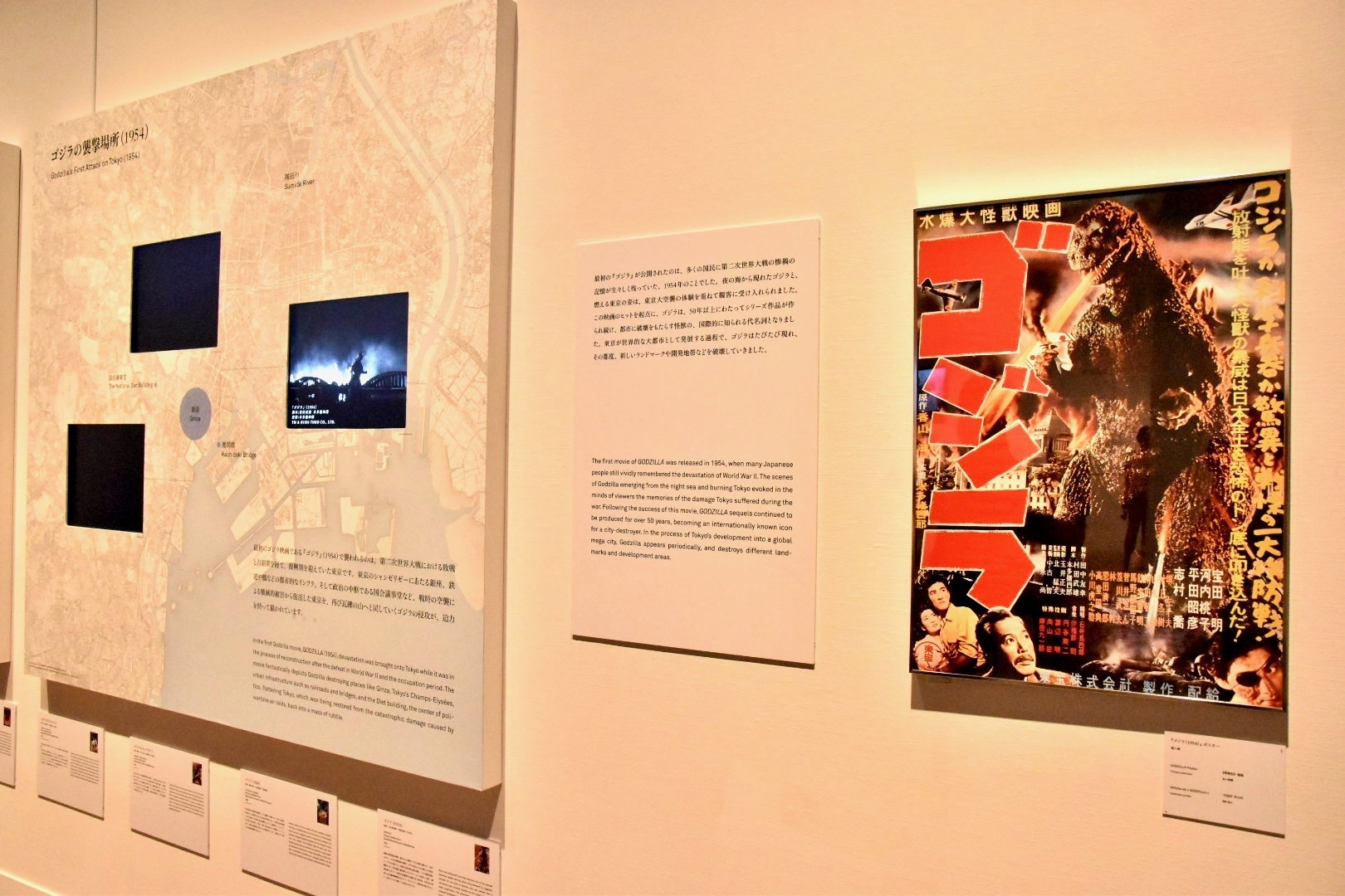 セクション1「破壊と復興の反復」より『ゴジラ』の展示風景