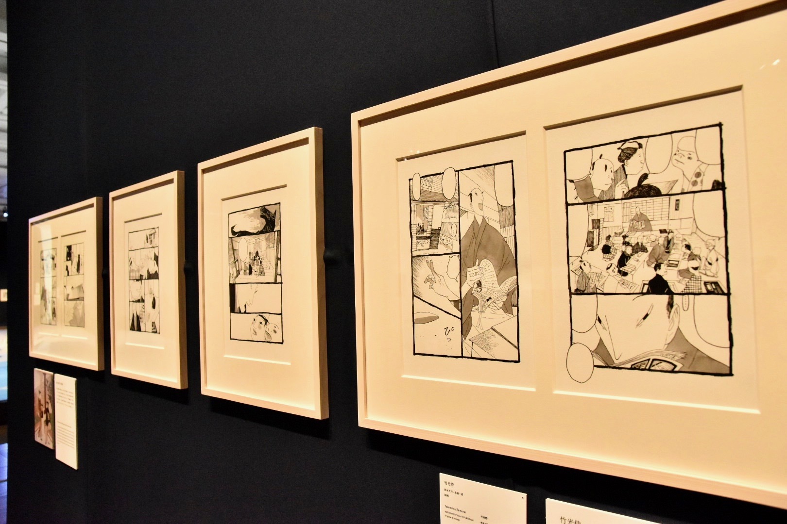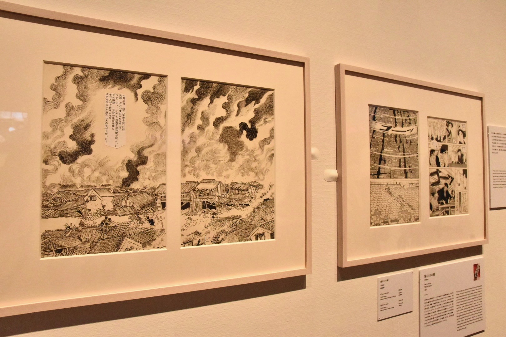 そのような時代を背景とした特徴的な作品として、大正時代を舞台にしたラブコメディ『はいからさんが通る』や、高度経済成長期の日本を描いたボクシング漫画の名作『あしたのジョー』、華やかなバブル期の都内の名所が登場する短編連作マンガ『東京エデン』などの原画が出品されている。