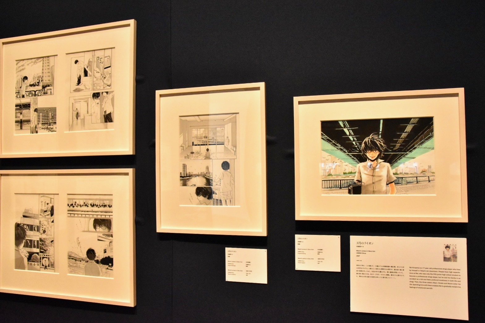 一方、20世紀末以降、経済的な低迷期に入った日本では、ささやかな日常の中に幸せや美しさを見出すような傾向が見られるようになった。展示後半では、近年国内で大ブームを巻き起こしたアニメ映画『君の名は。』の映像資料や、高校生棋士を主人公にした『3月のライオン』の原画などが紹介されている。多種多様な作品を通して東京の街の変遷をたどりながら、現実の<東京>と、フィクションの<東京>の姿が複合していくような感覚を味わいたい。