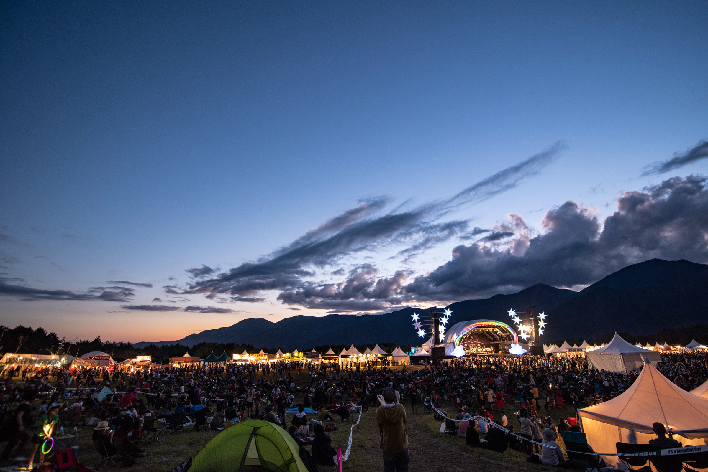 秋を代表する野外音楽フェス『朝霧JAM』。フェスの正式名称は『朝霧JAM It's a beautiful day』ですが、日本で最も長い名を持つフェスのため音楽ファンからは通称『アサギリ』と呼ばれています。また、名前にある“JAM”には「ジャンルレスに様々なミュージシャンが集い、皆で楽しむ」という意味が込められているそうです。