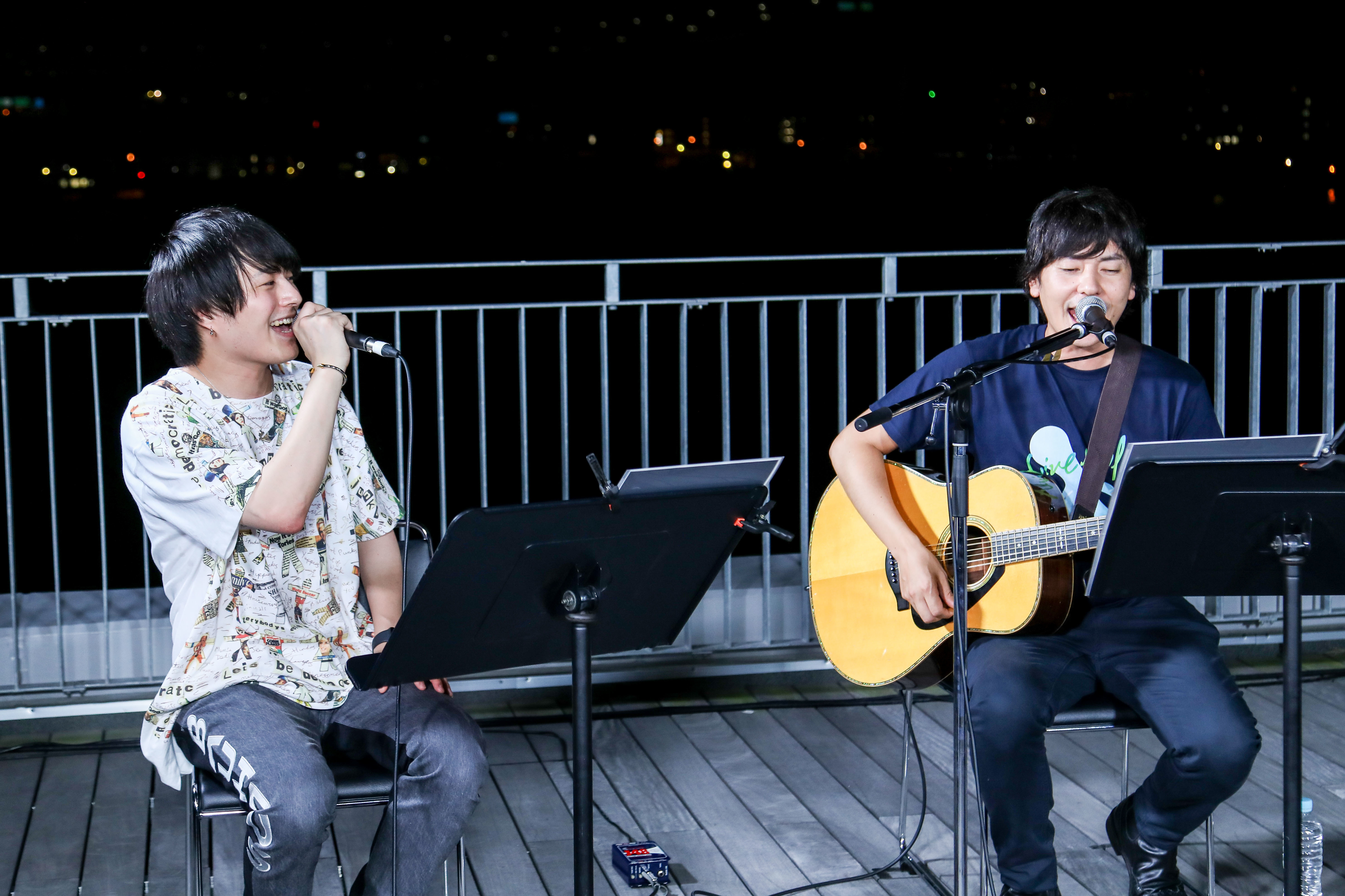「僕らの弾き語りが2020夏の思い出になってくれたら」と、選曲はフジファブリック「若者のすべて」。当日初めて音合わせをしたというが、山村のアコースティックギターの音色に竹中は堂々と伸びやかな歌声を乗せていく。山村がボーカルをとるパートでは、竹中が繊細なハモリも聴かせた。ラストパートではお互いの目を見つめ微笑み合いながら声を重ねた。このセッションを通して2人の間に確かな絆が芽生え、特別な思いが受け継がれていくのを感じた。大阪が生んだ2人のボーカリストの美しいハーモニーが、故郷の夏の終わりの夜空に響いた。