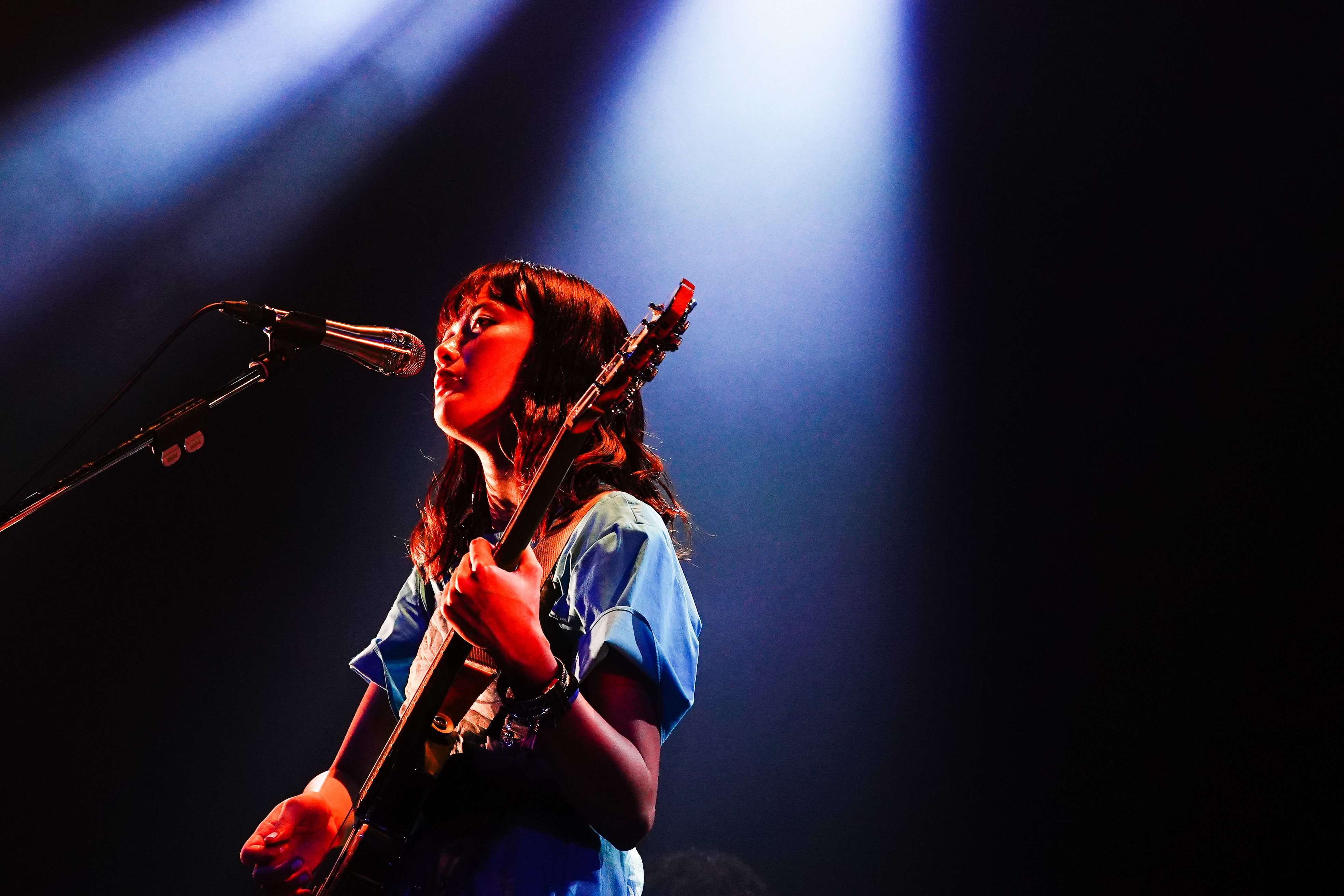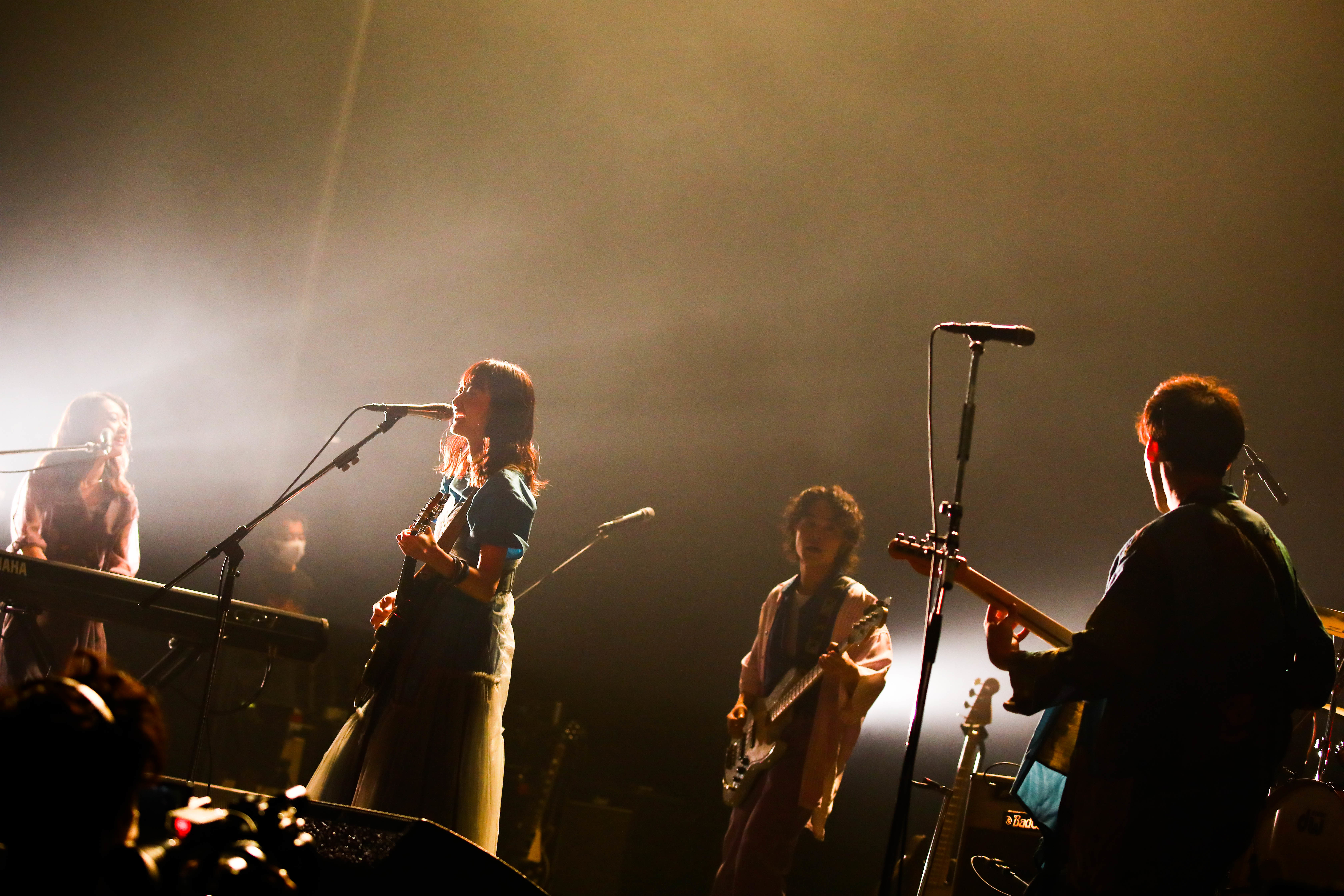 長屋晴子の突き抜ける歌声とライブならではの臨場感のあるアレンジで引き込んだ後、長屋がギターを手に取り疾走感のあるナンバー「スカーレット」に流れ込んだ。MCでは前日のラジオ出演で山村が「ライバルのよう」と発言したことが嬉しかったと話し、同じステージに立てる喜びを噛み締めた。その後、開けていくサウンドの「夏を生きる」からエモーショナルな「Shout Baby」と続ける。キーボードはカラフルな音を添え、リズム隊がしっかりとしたテクニックで支える。5つの音が長屋の歌と絶妙に融合し、見事なサウンドスケープを生み出している。