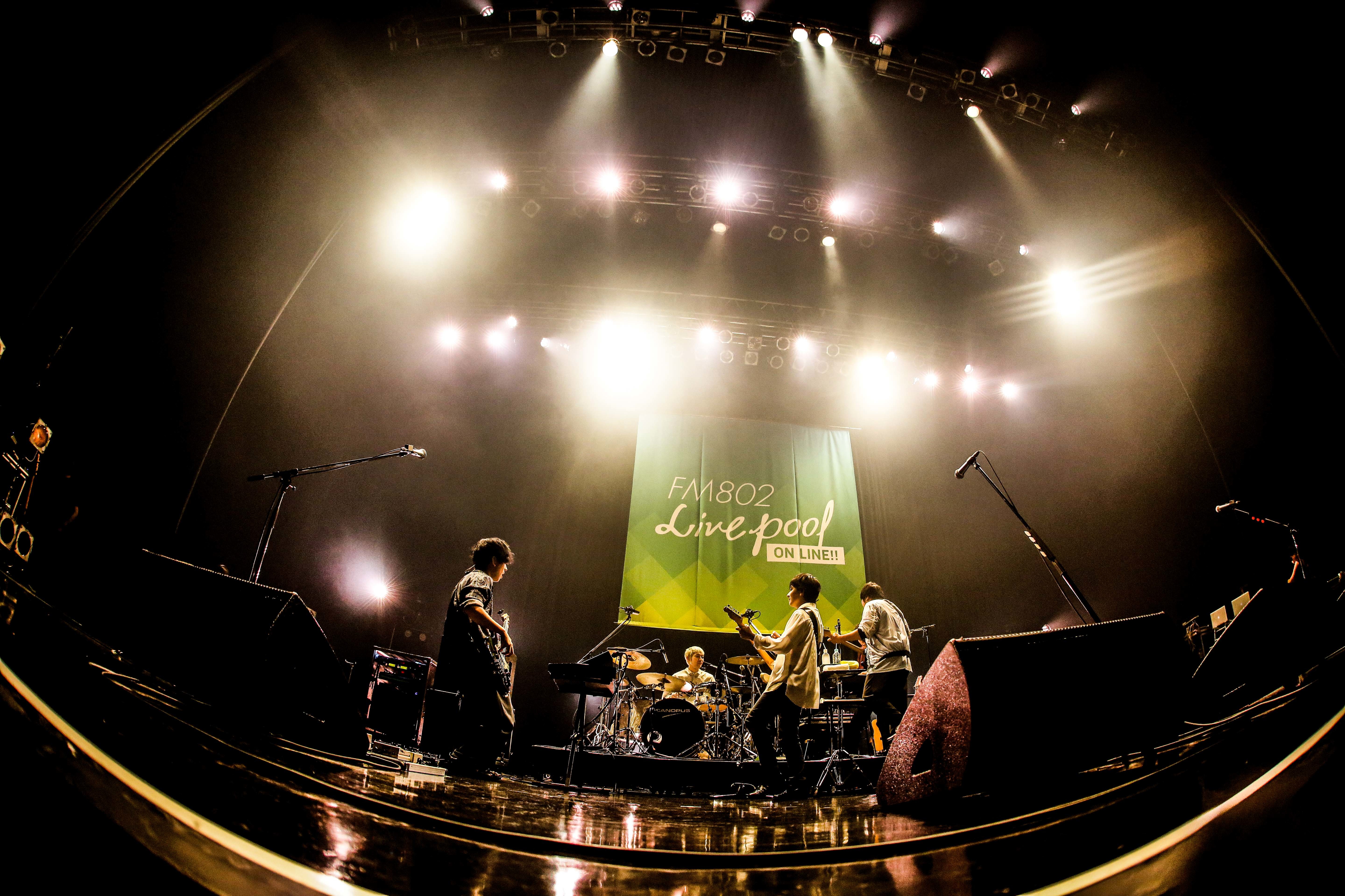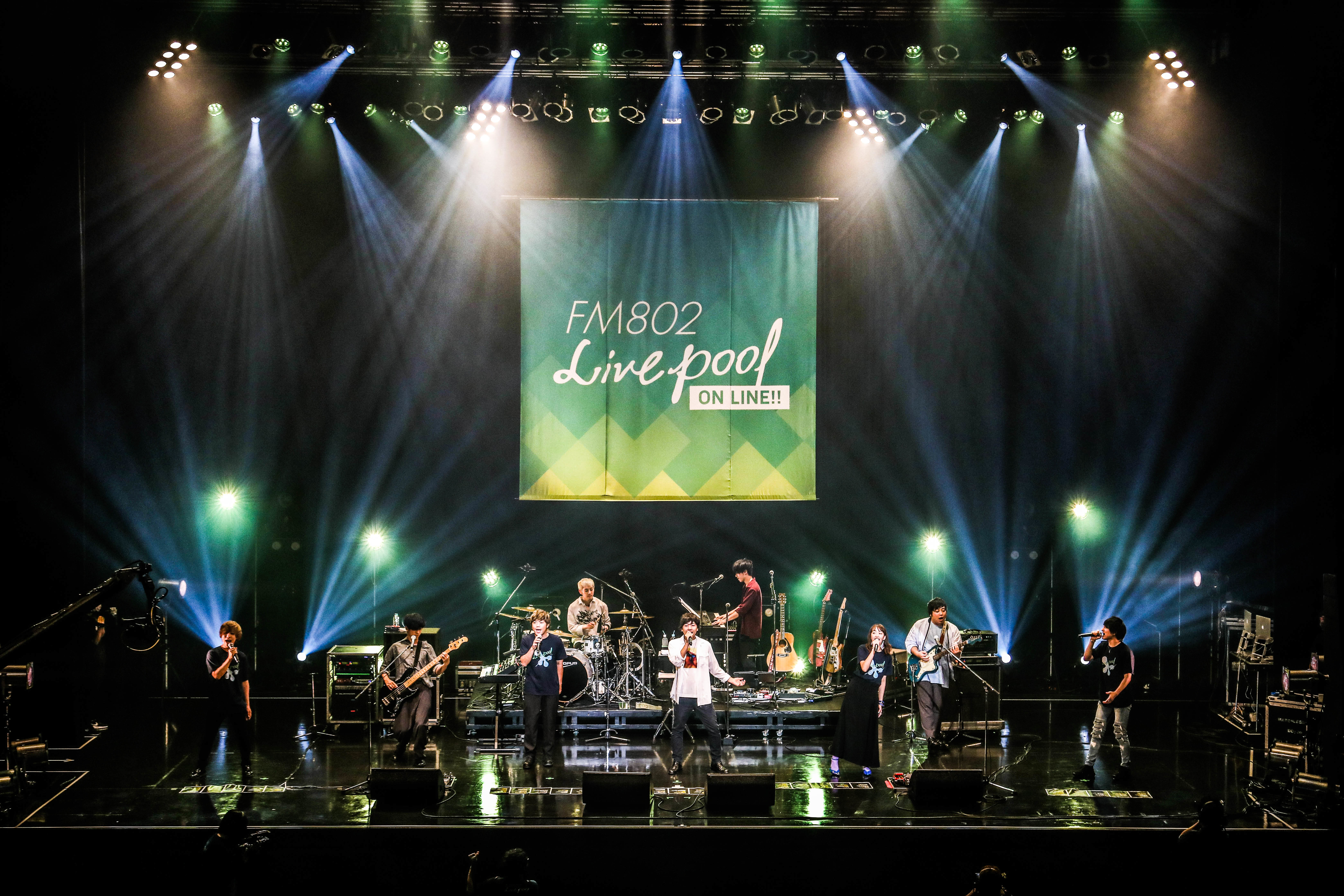 オムニバス配信ライブイベント『FM802 Livepool ON LINE!!』が8月25日(火)Zepp Osaka Baysideにて開催された。 FM802とホストバンドのflumpoolが、今最も勢いのある3組を招き対バン形式で行うライブイベント。当初、3月に開催予定だった本イベントだが、新型コロナウイルスの影響を受け延期となっていたが、開催への思いが実り、無観客という形をとりオンライン生配信での実現に至った。