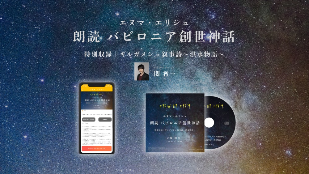 第二弾は『朗読エヌマ・エリシュ~バビロニア創世神話』と特別収録される『ギルガメシュ叙事詩~洪水物語』の2作が楽しめる。ナレーターは、古代オリエント博物館の常設展示にて音声ガイドナビゲーターをつとめる関智一。