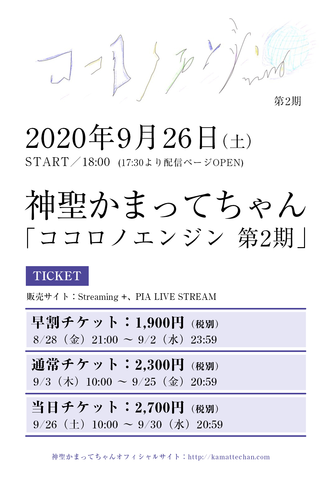 7月に開催された配信ライブ『ココロノエンジン』に続く、配信歴10年以上の神聖かまってちゃんが『ココロノエンジン 第2期』でどんな配信ライブを行うのか。楽しみにしていてほしい。