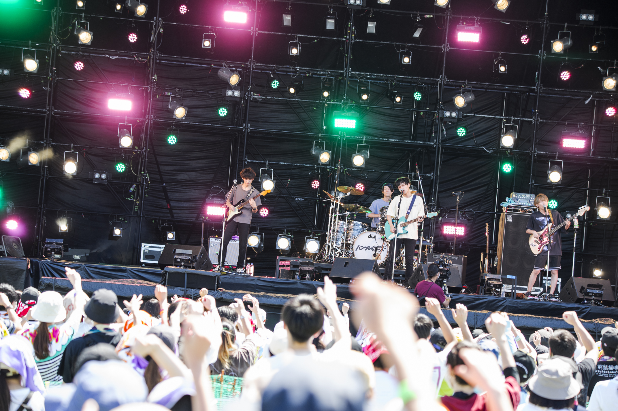 「今日ここに来てくれてる人、そして、来たいけどいろんな理由でここに来れない人、みんなが正しいと思っていて、誰も間違ってないと思います。だからこそ言わせてください。ホントに今日ここに来てくれて、『RUSH BALL』を開催してくれてありがとうございます!」とムツムロ。続けて、2018年の初出演時にATMCで「次はでっかいステージで会いましょう!」と投げかけた言葉がようやく実現した喜びをでらし(Ba.Cho)が語り、「最後には笑ってこのステージに立ってやると、ずっと思って半年を過ごしてきました。諦めなければ絶対にかなわないことはないと、そう思います」(ムツムロ)と、大空に突き抜けるようなアンセム「銀河高速」を歌い上げる。