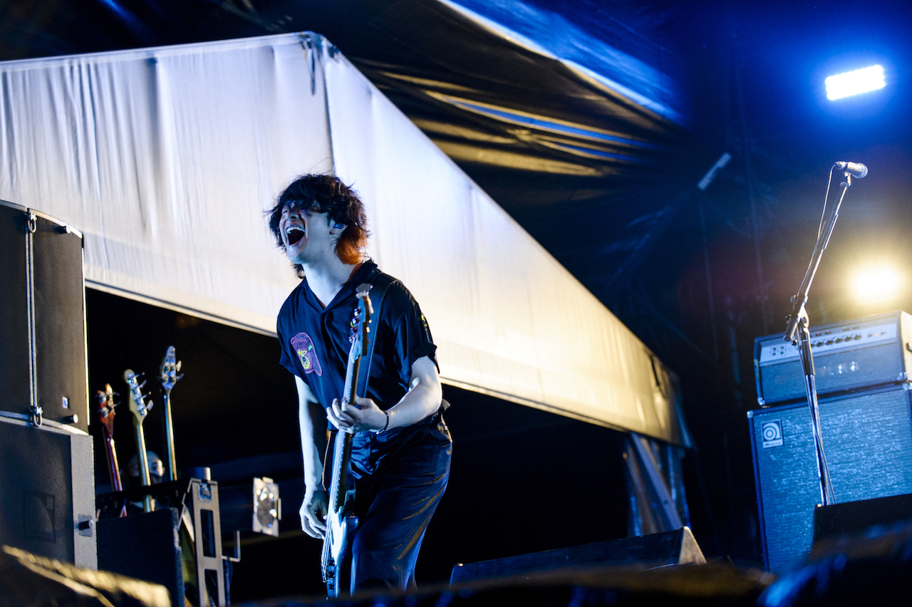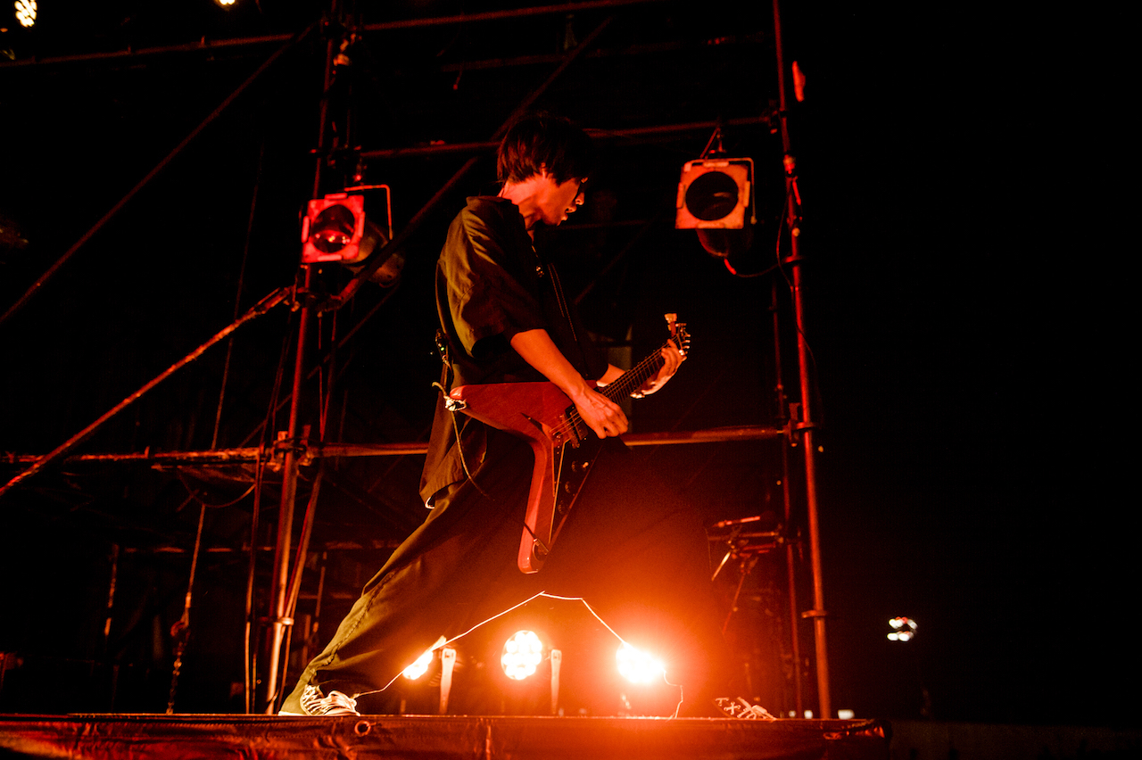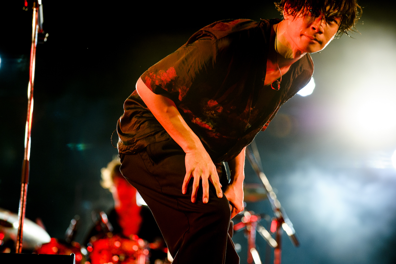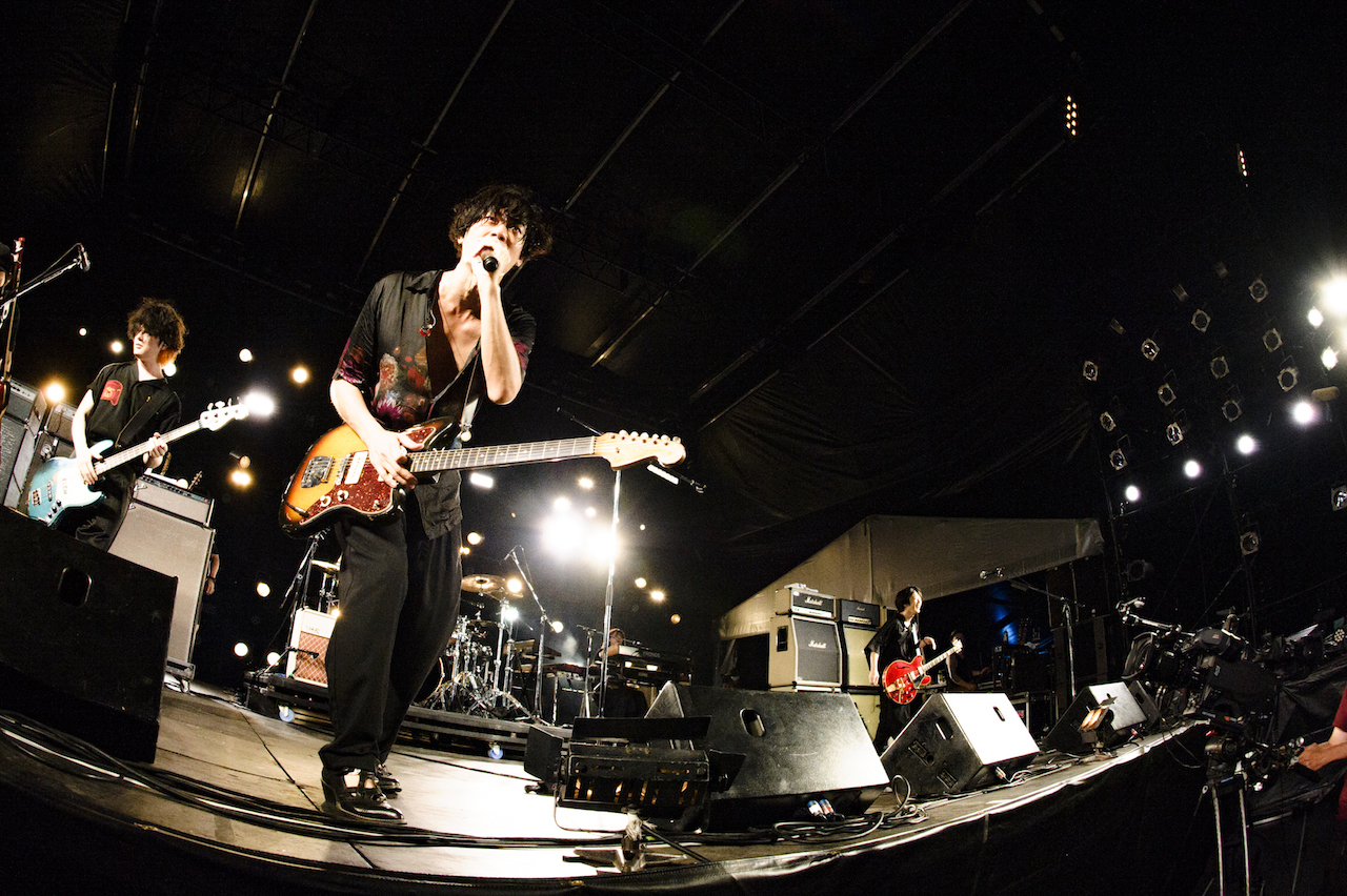まずは、自宅でのリモートで制作した新作コンセプトアルバム『Bedroom Joule』から「Run Away(Bedroom ver.)」をプレイする彼ら。原曲が持つ沸騰状態の熱とは違い、ふつふつとした高揚感をもたらすリアレンジで、すっかりナイトモードにスイッチした泉大津の地を心地よくサーフする川上洋平(Vo/Gt)。かと思えば、続く「ムーンソング」では川上と白井眞輝(Gt)が奏でる鮮やかかつリリカルなツインギターで、一気に加速度を増していく。