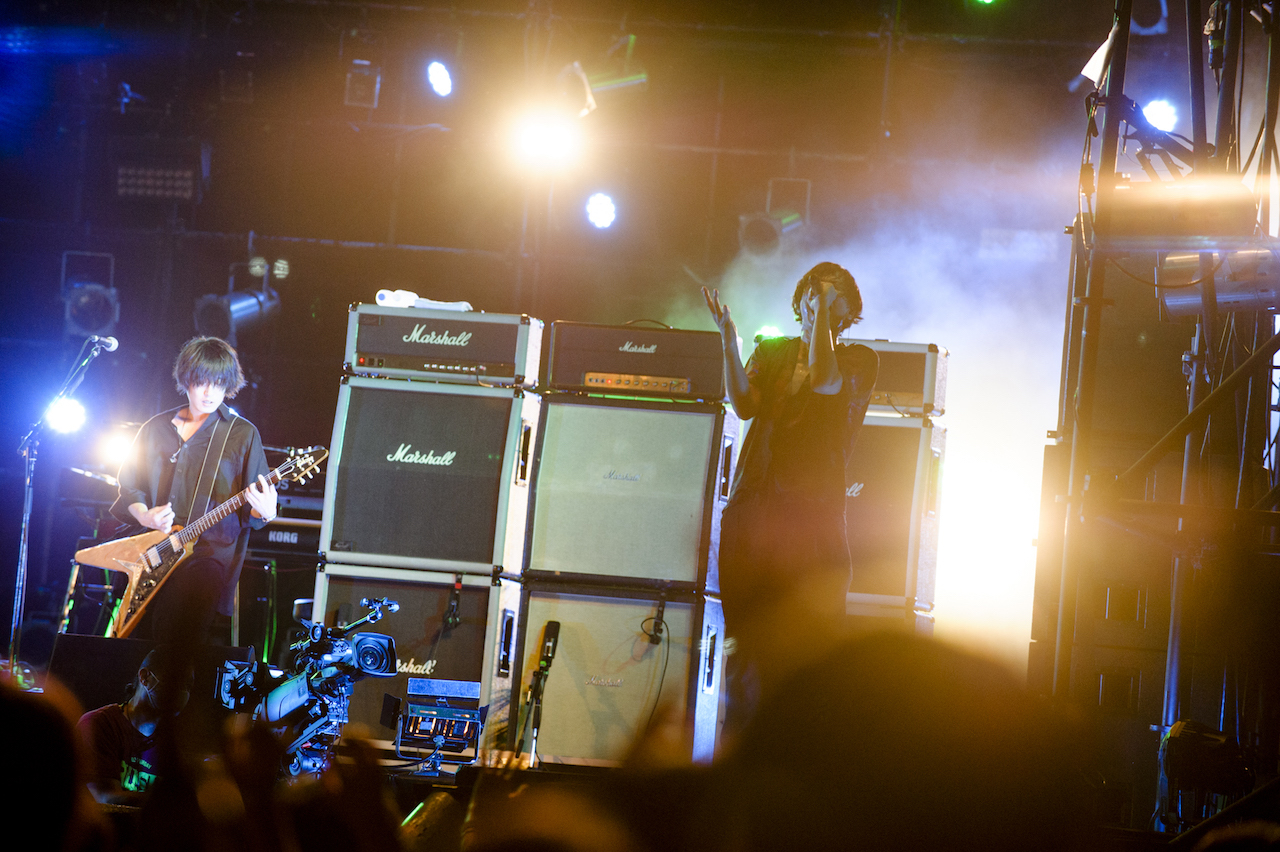 「アンコール代わりにいいですか!?」(川上)と、なだれ込むオーラスは「Starrrrrrr」! 磯部寛之(Ba.Cho)の刻む極太のリズムとサポートのリアド偉武(Dr)の怒涛のドラミングを下敷きに、雄大なサウンドスケープが湧出。溜まったフラストレーションを蹴飛ばすような開放感たっぷりに描く白井のギターリフとサポートのROSE(Key)が支える明朗なメロ、その全てが合わさった瞬間の多幸感はまさにライブでしか味わえないものだ。
