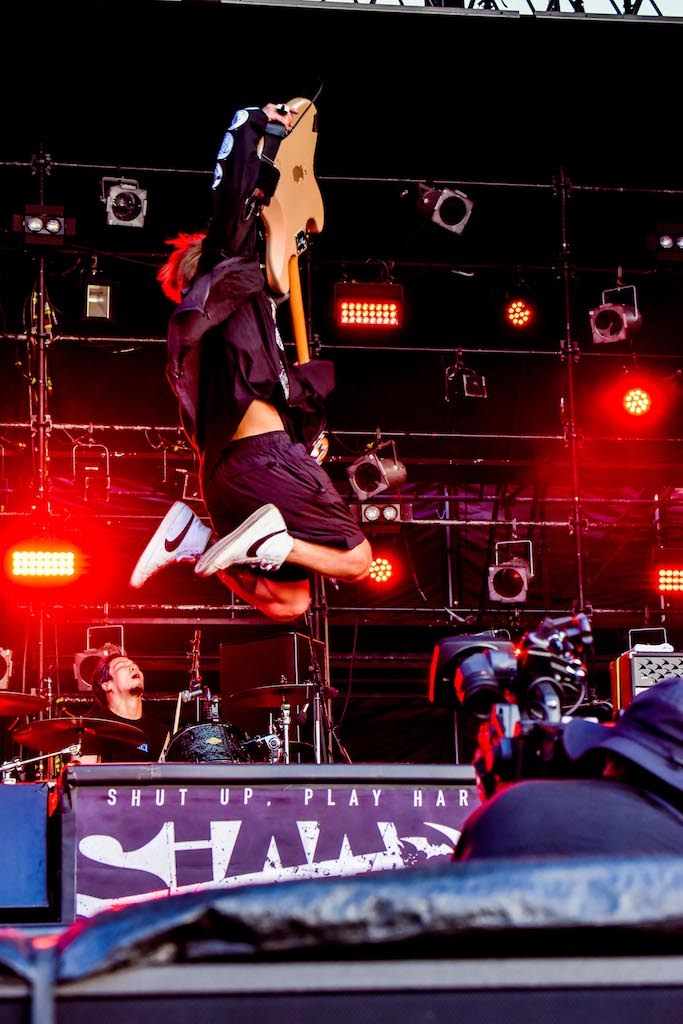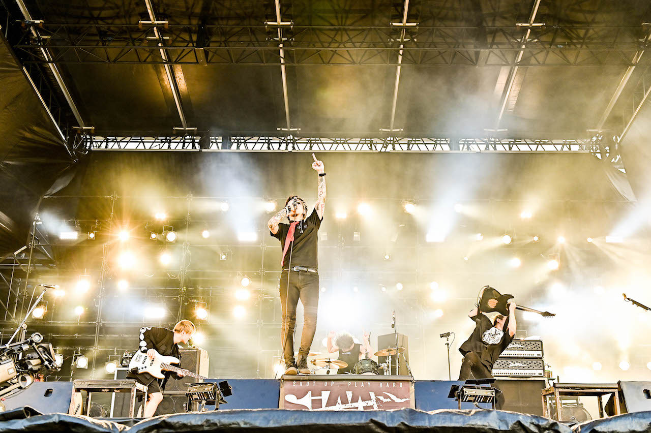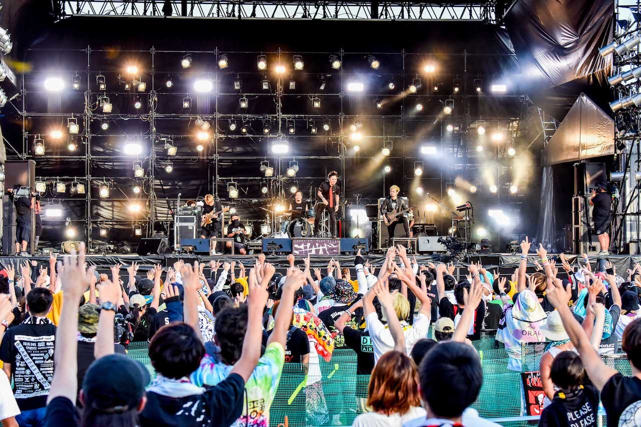 最後は「Blah Blah Blah」「f.a.i.t.h」の鉄板の流れへ。SHOW-HATEの空を舞うかのような大ジャンプパフォーマンスに呼応するかのように、ヘドバンの嵐に。「俺にはパカーンと割れる泉大津が見えます!」(MAH)の言う通り、そこには確かに目には見えないウォール・オブ・デスが。どんな状況でも、容赦なくライブハウスさながらの熱狂を生み出す彼らにロックバンドの誇りと生き様を見た。