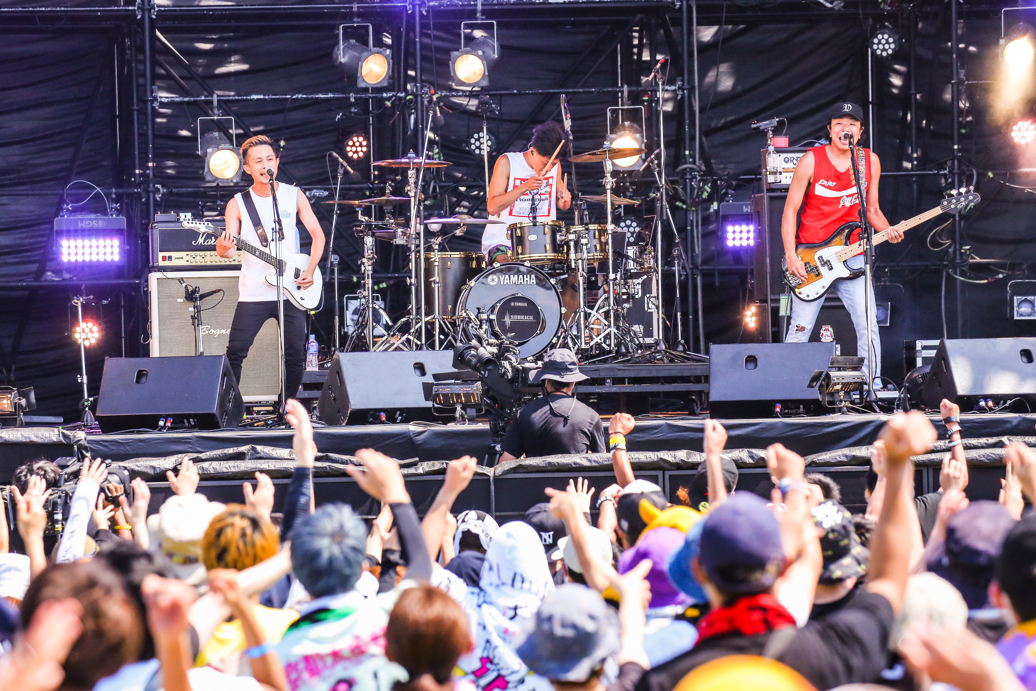 また続けて「俺たちは音楽という最高の武器を持ってます。君は一人じゃない。いくで大阪!」(Shun)とくれば、次は「Place to Try」。疾走感十分でJoseの速弾きも冴え渡り、ますます気分は上昇の一方だ。だが、もうひと声!とでも言うように「一人サークルピット、俺たちに見せてくれ!」(Jose)、「これが新時代だ!」(Shun)と、スピードを緩めることなく「DA NA NA」を最終投下! Shunのラップや耳なじみいいメロディが観客一人ひとりをターンさせ、触れ合うことがないままでもフェスの醍醐味を味わえることをまた一つ証明してみせてくれた。