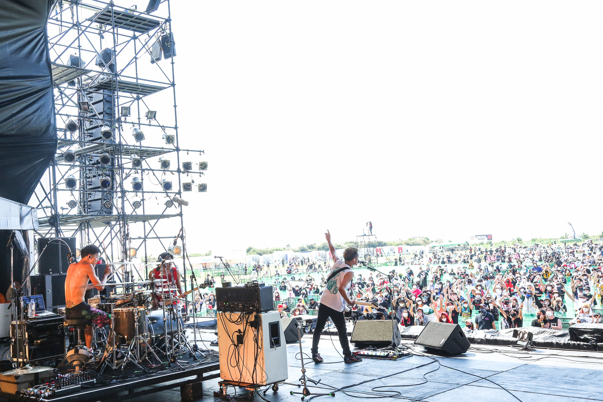 しかし、もっともっと!の貪欲さで「声を出してはいけない……上等だよ。それでもこの曲をやらないと俺たちの夏は終わんないんだぜ!」(Jose)と鳴らす「PARTY PARTY」には沸点越えの高揚感。手を振ってダンスにクラップにとすべての人がフェスを謳歌し、これにはBunta(Dr)も思わず「楽しっすね~」とポツリ。