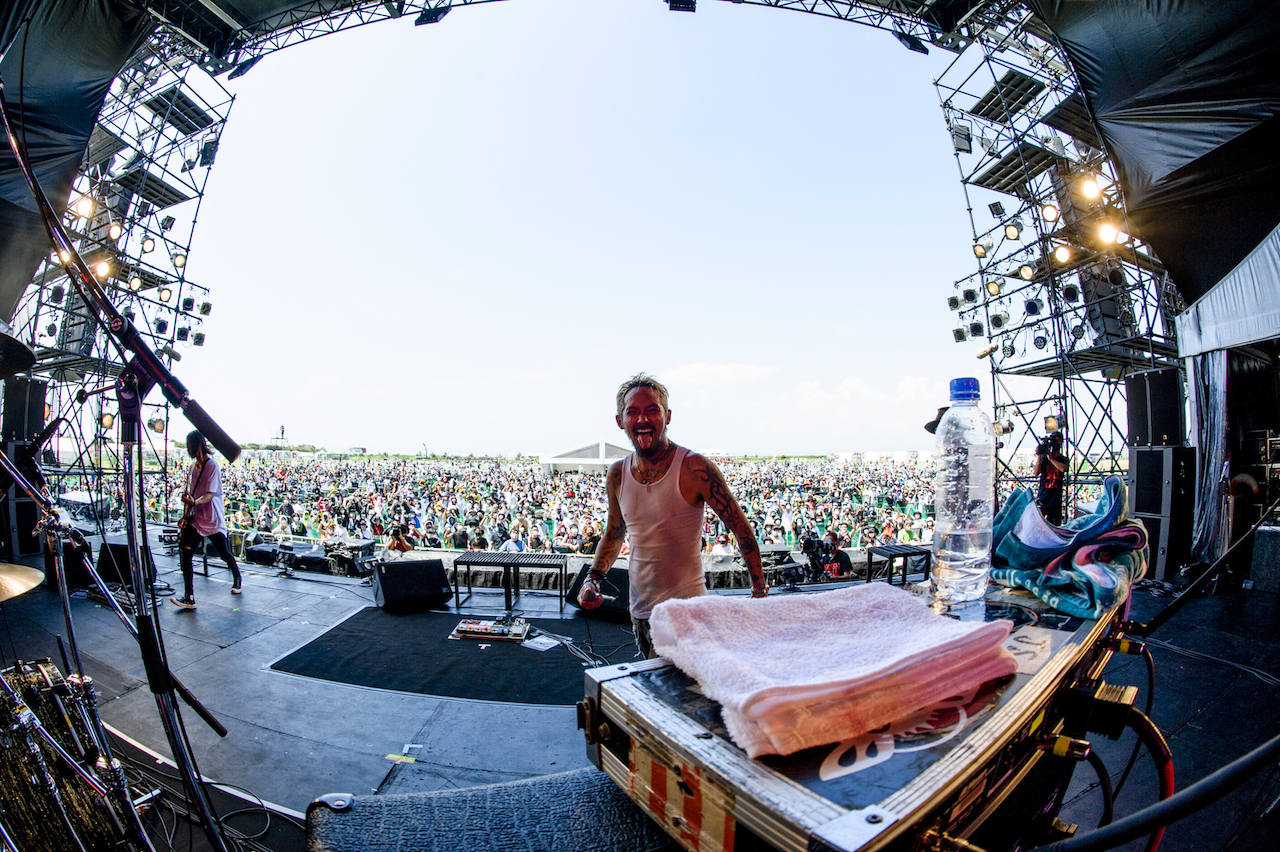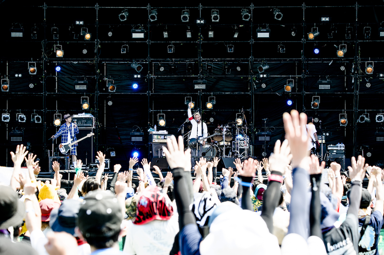 前年、前々年と姿を見ることができなかったThe Bonezが、ついに今年は泉大津のステージに。「待ってました!」とばかりにバンドのタオルを掲げたファンが前方に陣取り、リハーサルでも手拍子が発生する。