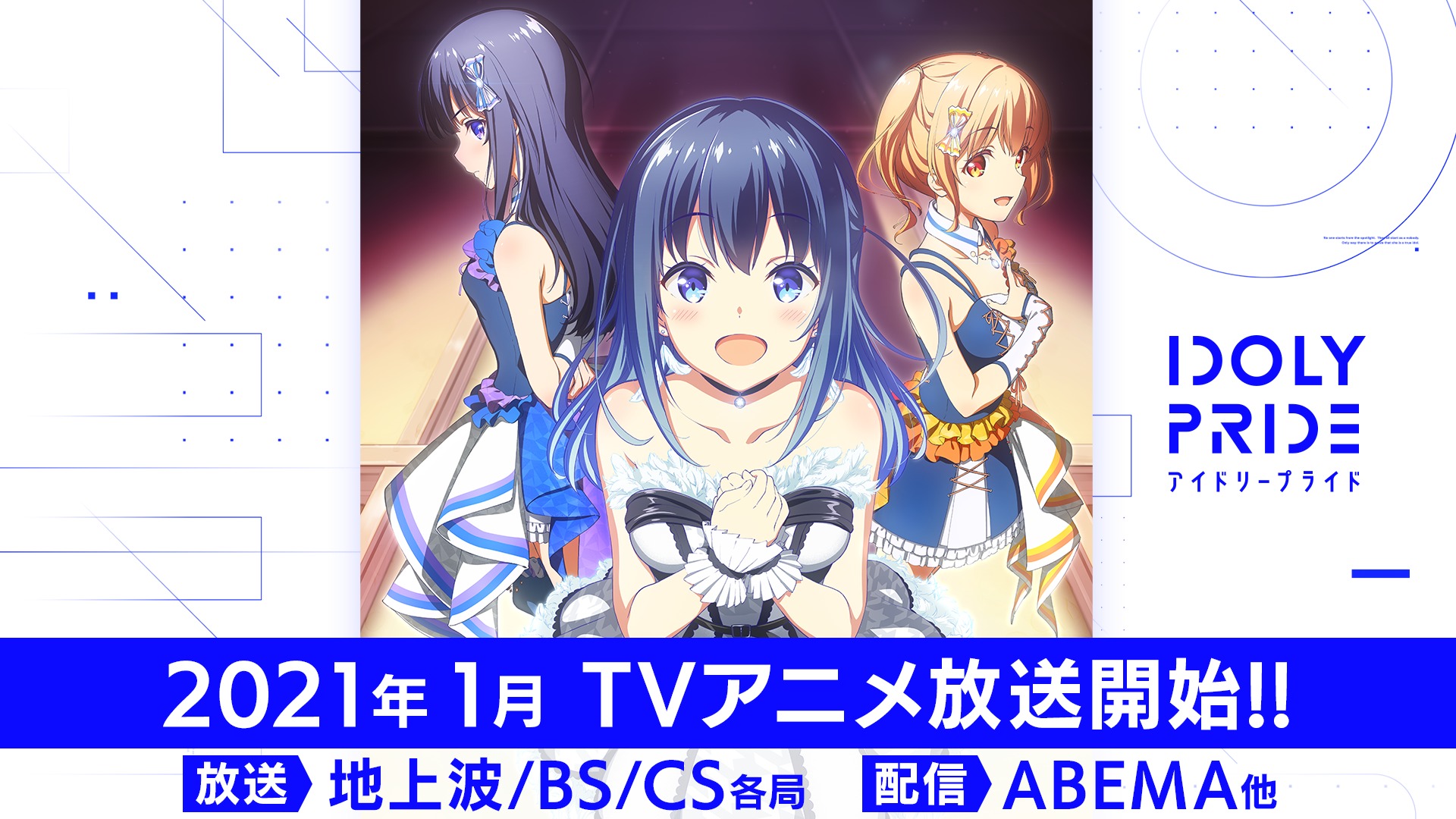TVアニメ化は、8月30日(日)にテレビ&ビデオエンターテインメント『ABEMA』・YouTube Liveにて放送したスペシャル音楽番組『IDOLY PRIDE ミュージックプログラム #1』で、キャストによるライブパフォーマンスを披露するとともに、TVアニメの放送時期が2021年1月に決定したことを発表された。