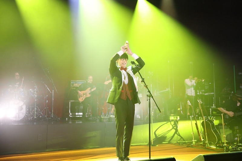 そして彼女も含めた鈴木姓アーティストを「民謡の鈴木(鈴木愛奈)」「アイドルの鈴木(鈴木愛理)」「とんでもない鈴木(鈴木雅之)」と紹介したり、コメントに飛び交うビールギフトの多さからのお酒トークから、「おしゃべりも楽しいけどこの際だから一曲やりませんか?」とオーイシがアコースティックギターを携えて、サプライズのコラボナンバーがスタート。