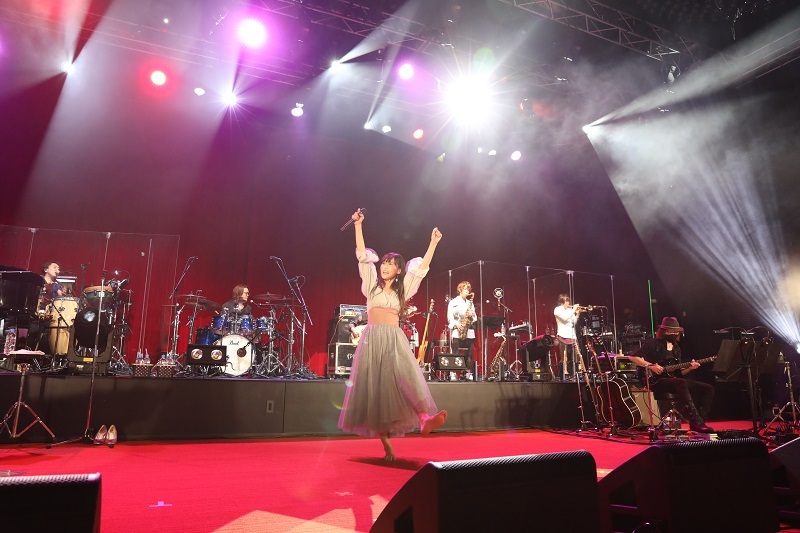 まずは待望の映画公開も間近となった劇場版『ヴァイオレット・エヴァーガーデン』の主題歌「WILL」。「ヴァイオレットとの出会いが無ければ生まれなかった」と自身も思い入れを込めて作ったという曲を、フルートとピアノの美しい旋律とともに伸びやかで愛あふれるボーカルで、情感満点に唄いきった。