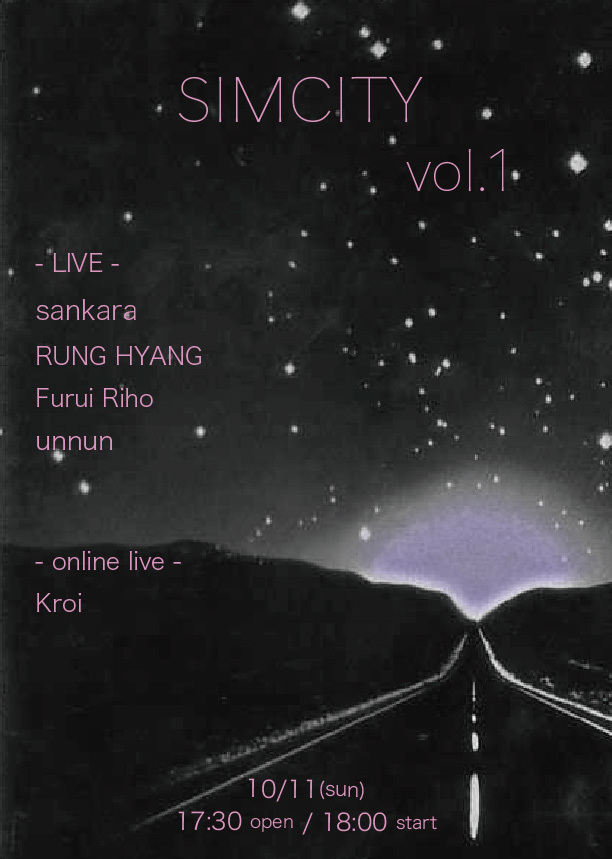 『SIMCITY』は sankara が、ジャンルや世代を超えて今もっとも気になるアーティストに声をかけ、音楽だけでなくファッションやアートなどさまざまなカルチャー、そしてオーディエンスとともに新たなコミュニティ作りを目指すイベント。第 1 回目には Kroi、unnun、Furui Riho、RUNG HYANG の出演が決定している。