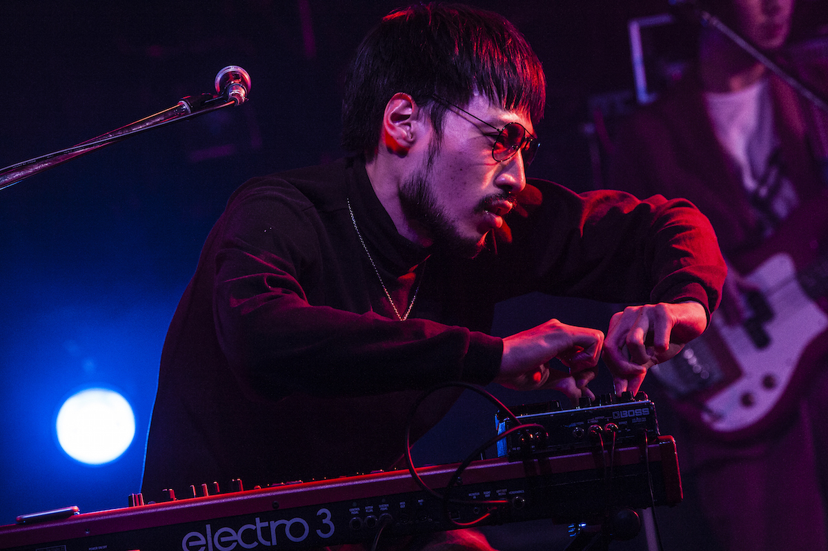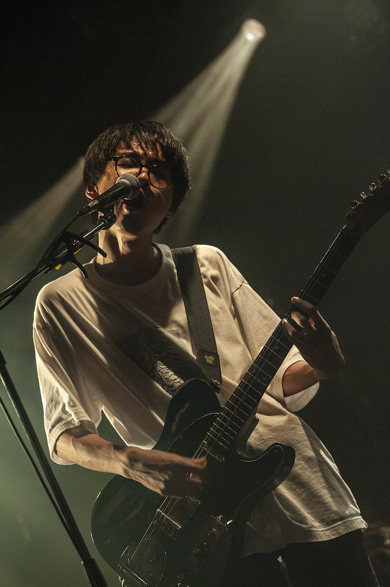 4曲目の「東京」は、一曲のなかでテンポも曲調も変わる劇的な曲で、このバンドの底知れない感じが存分に炸裂している手応えがあった。ラストにある、ヤナセの振り絞るような弾き語りもグッとくる。そこから間を空けず、「回転」、さらに「家庭のひかり」を演奏し、熱量を放出しきって終了。30分間MCなし。音楽ですべてを語る、ストイックな構成で魅せた。