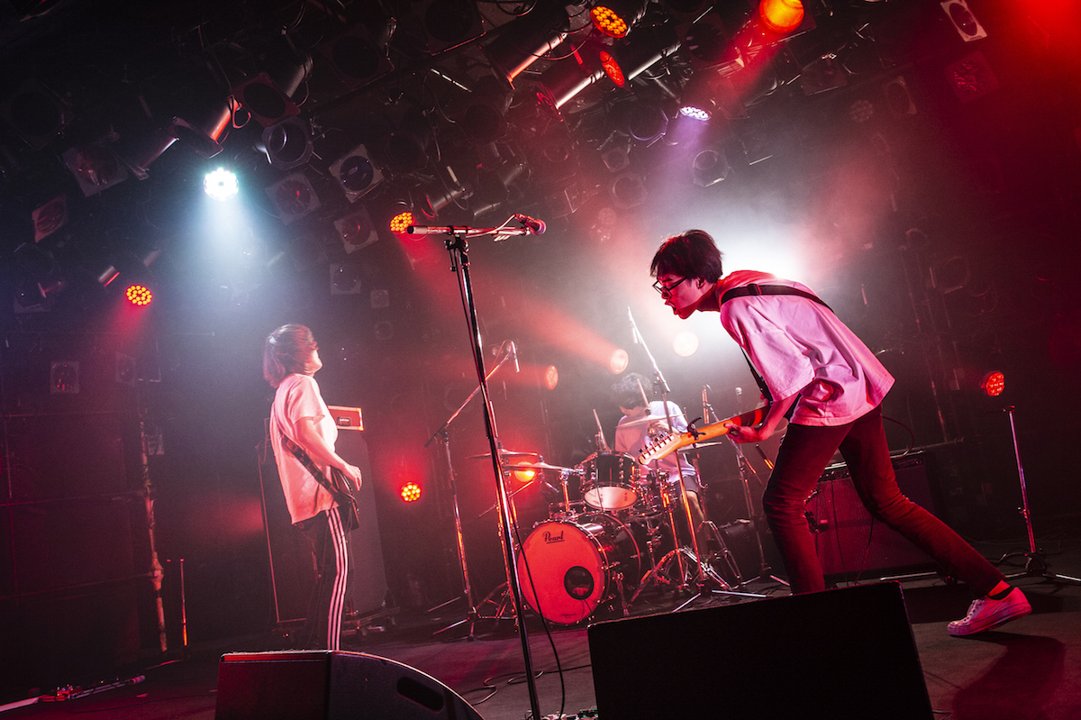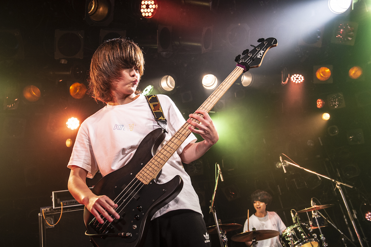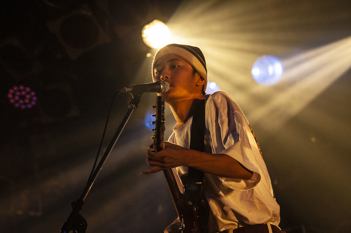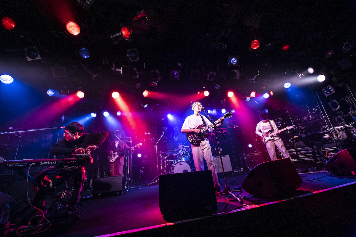 MC明けの「頬のホクロと涙袋」は、「サンタが町にやってくる」のメロディを引用したクリスマスソング。そもそも彼らが出場した『ワン!チャン!!』や『RO JACK』は、大型イベントへの出演権を賭けたオーディションなわけで、本来出演できるはずだったイベントが残念ながら中止になってしまったこの状況、相当フラストレーションが溜まっていたのではないだろうか。そこに、クアトロという大バコで演奏しているからこその興奮も重なって、メンバーみんなすごく楽しそうに演奏していたのが印象的だった。バラードを2曲続けて演奏したあと、「平成アロハ航路」で軽快に終了。カメラに向かって歯ギターを披露するなど、視聴者へのアピールもしっかりと。