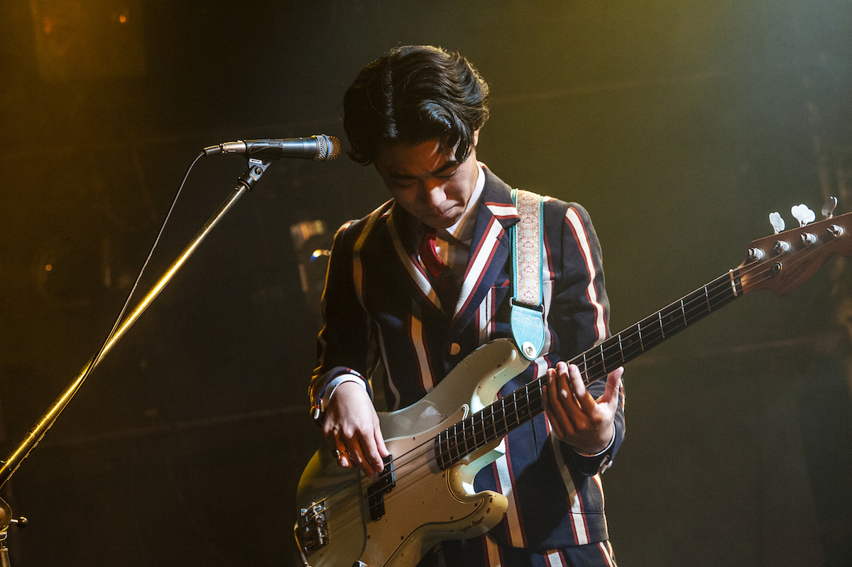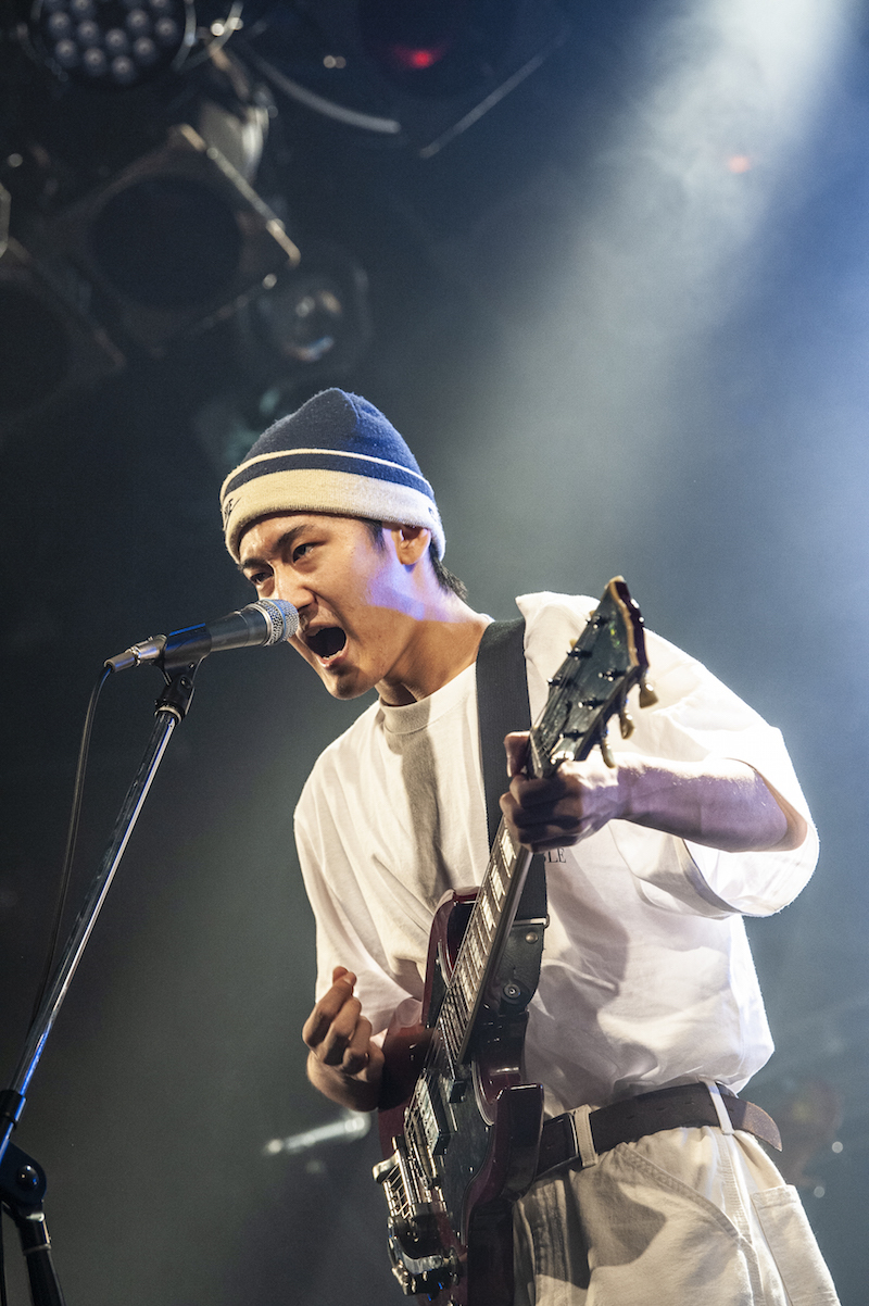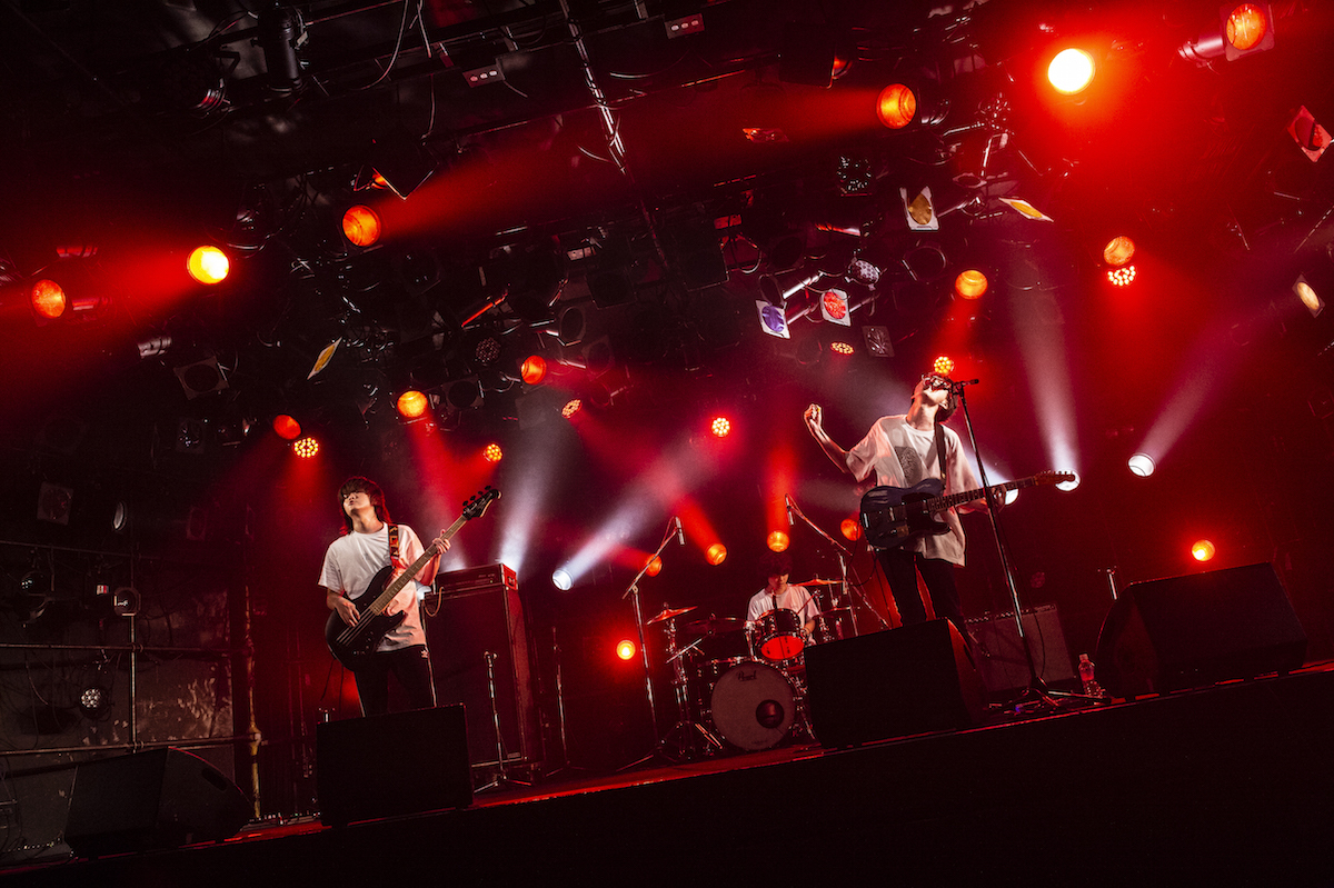 ここで根本が「普段と照明の数が段違いだからめちゃくちゃ暑い……」と呟いたことで、なるほど、そういう違いもあるのか、と思わせられる。MCでは、ライブの機会をもらえたことに対する感謝を言葉にし、次の曲=「戦争はおわり」のことを“映画『白い暴動』を吉祥寺で観て、音楽の持つ力、人の持つ力のすごさを実感したことから書いた曲”として紹介した。『白い暴動』は、1970年代のイギリスで人種差別と戦った若者を描いた作品。剥き出しのロックサウンドは画面を破ってきそうな勢いだ。その後、「大舞台でやるのがめっちゃ気持ちいい曲なので楽しんでやりたいと思います」(根本)と「ララバイ」を放って、終了。