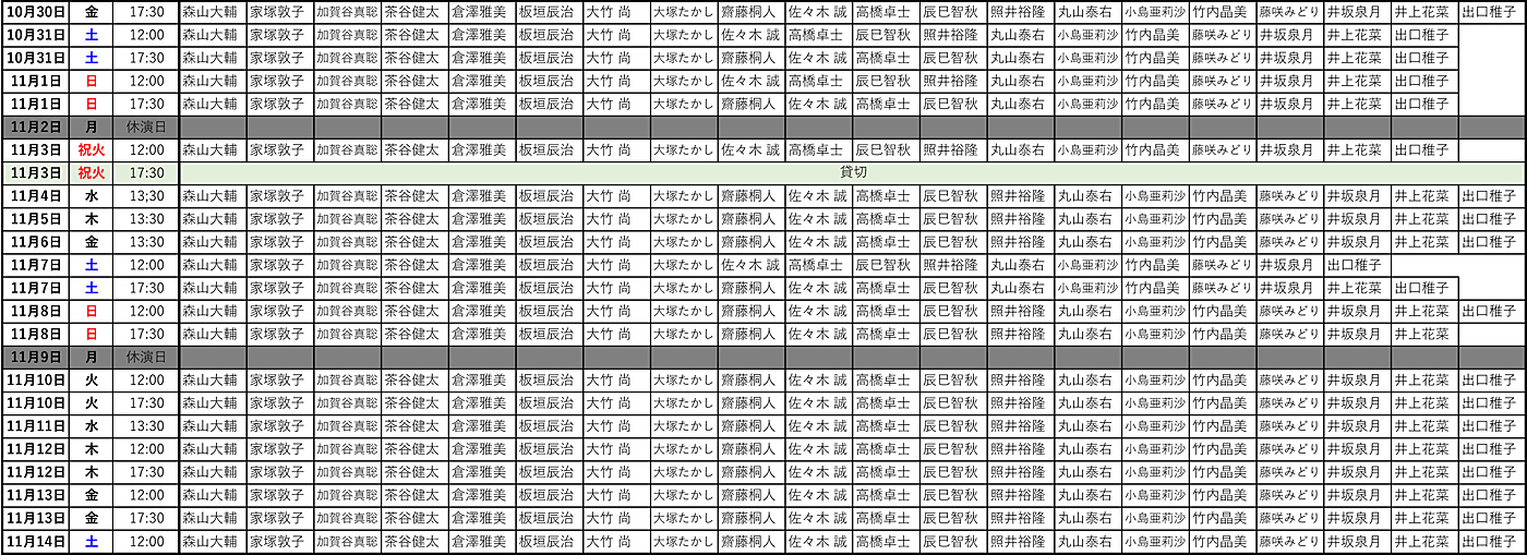 ■オープニング公演・東京公演 アンサンブルキャスト ローテーション表
