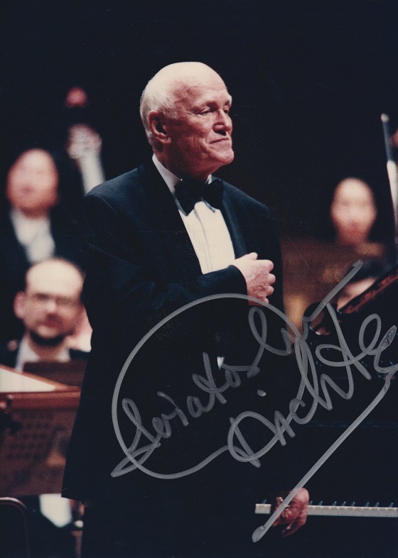 聞かれると思ったので、一応調べてきました。ルドルフ・バルシャイの指揮、センチュリー交響楽団で、モーツァルトの1番、5番、18番を演奏しているようです。この写真、自分では結構気に入っていたので、リサイタルで再びシンフォニーホールに来られた時に、1枚はリヒテルにプレゼント、そして1枚はサインをお願い出来ないかと、2枚を関係者に託したところ、リヒテルが喜んでサインしてくれたよと戻してもらいました。後で判ったハナシですが、実はこの写真、リヒテル本人がとても気に入ったようで、リヒテルの家に飾ってあったそうです。その話を聞いて、とても嬉しかったです。