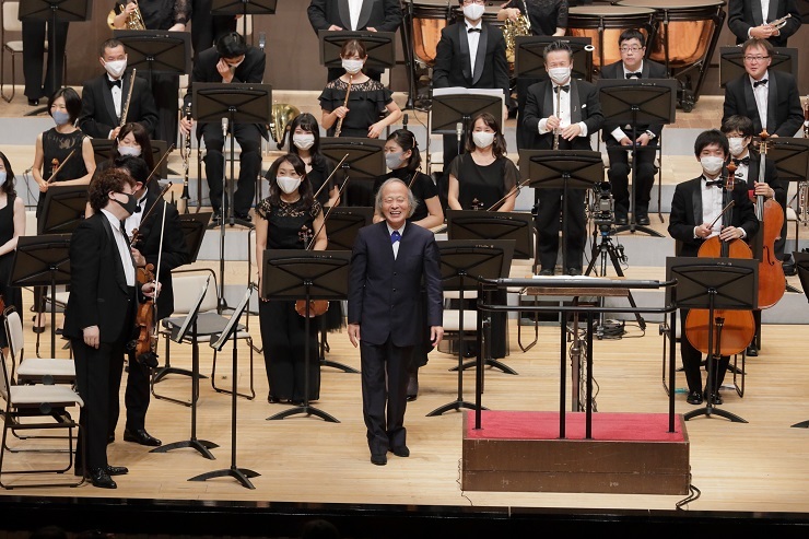 どちらも今年の8月23日にフェスティバルホールで行われた、チャイコフスキー「交響曲全曲演奏会」の写真。この日は、尾高さんがコロナ後、大阪フィルを始めて指揮する演奏会でもありました。客席にも同じように、コロナ後初めての演奏会という方も多かったようです。