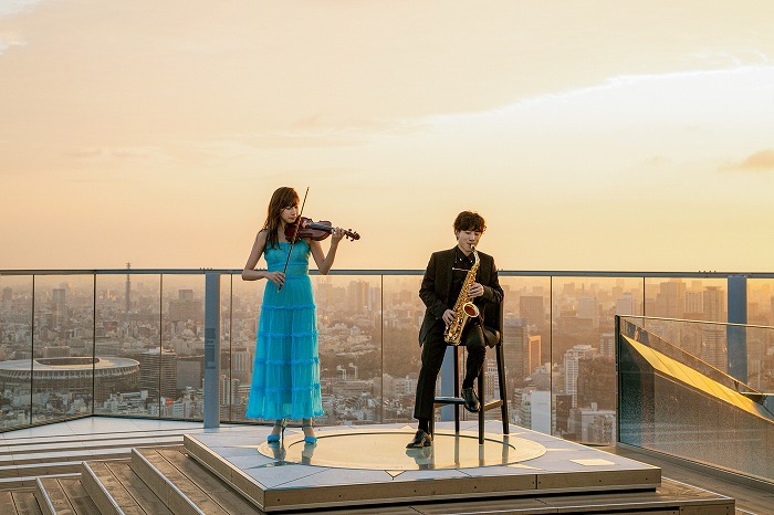舞台となったのは、上空約230mから東京を一望することができる東京・渋谷にある展望施設「SHIBUYA SKY(渋谷スカイ)」と、GINZA SIXにある都会の中で自然を身近に感じられる環境をシンボリックに表現した屋上庭園「GINZA SIX GARDEN」。東京藝術大学音楽学部の学生でバイオリニストの荒井里桜とサクソフォン奏者の上野耕平がイタリア人作曲家ジョアキーノ・ロッシーニの「ウィリアム・テル序曲」よりフィナーレを、それぞれ2着のフェンディ2020年プレ・フォール・コレクションをまとい演奏した。