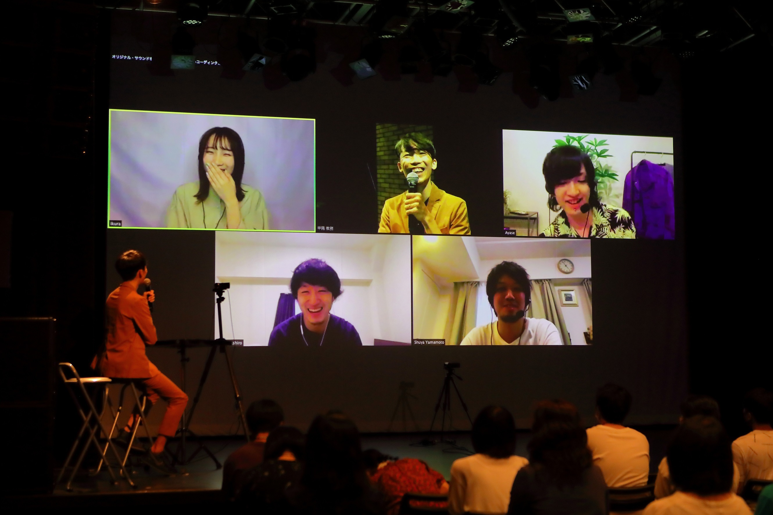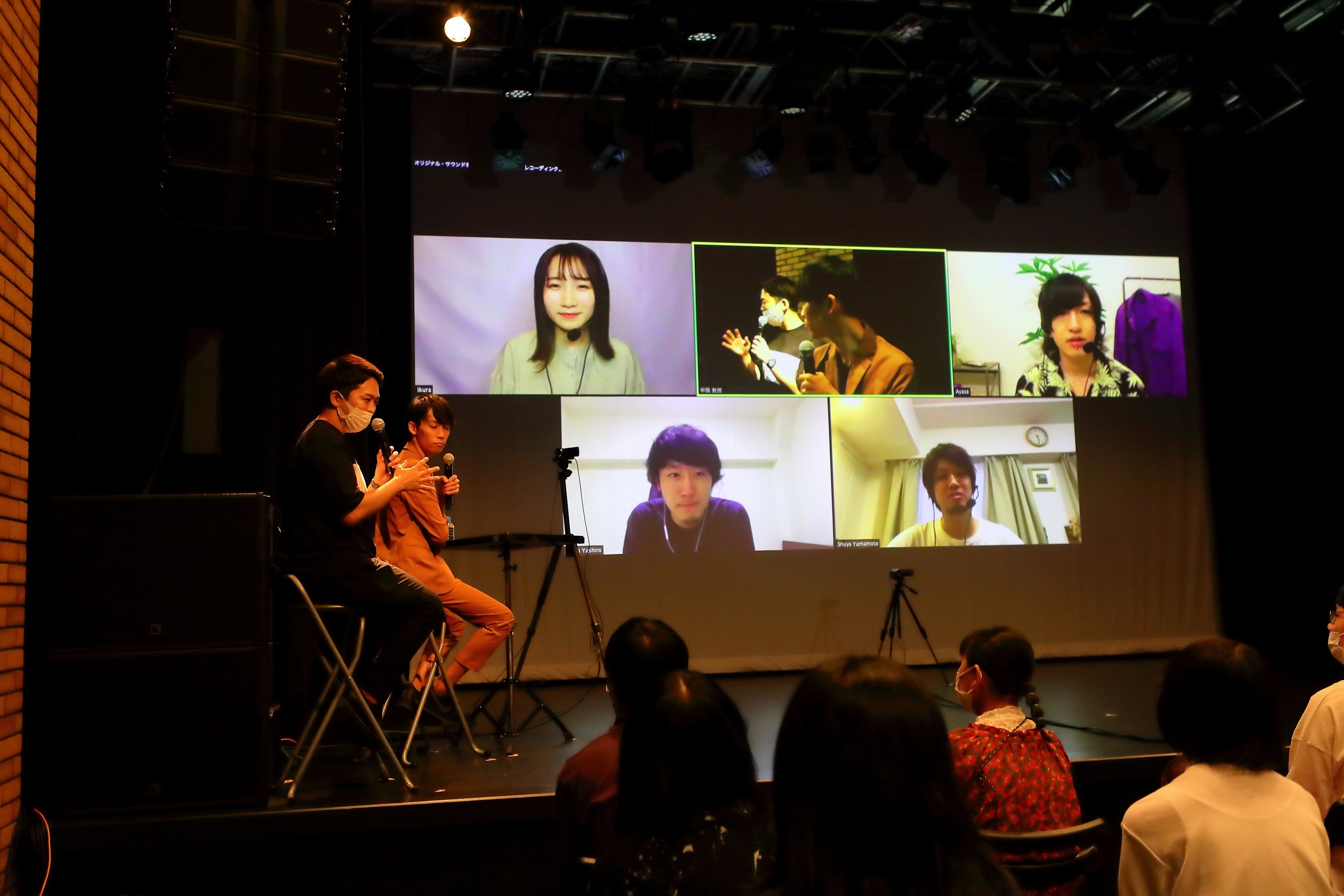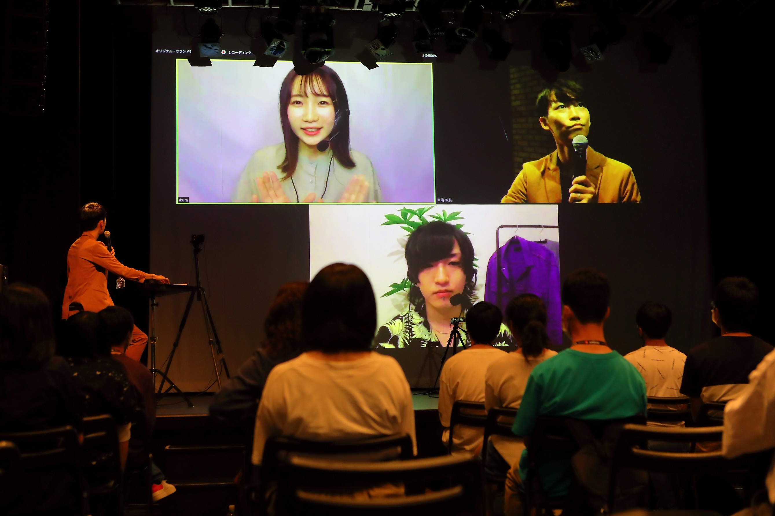 新型コロナウイルス対策を十分に行い万全の態勢を整えた会場の神戸・甲陽音楽&ダンス専門学校 ライブホール LS-1にはミュージシャンや音楽業界を志す学生、約50人が集結。司会役のKiss FM KOBEのサウンドクルー(DJ)・川田一輝が登場してイベントがスタートすると、YOASOBIのコンポーザー・Ayaseとシンガー・ikuraの姿がモニターに映し出されて大きな拍手が起きる。
