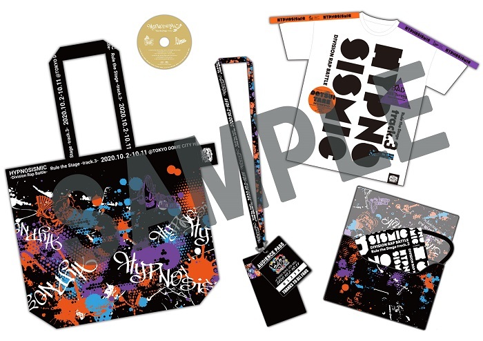 また、劇場来場者特典の「オーディエンスキット」の詳細もあわせて発表となった。track.3オリジナル楽曲が収録されたCDや、オーディエンスキット全てを収納できるBIGサイズのバッグ、チケットケースやTシャツを、すべてtrack.3のオリジナルデザインで配布。また、 今回初めて、ヒプステオリジナルデザインの布マスクを配布する。