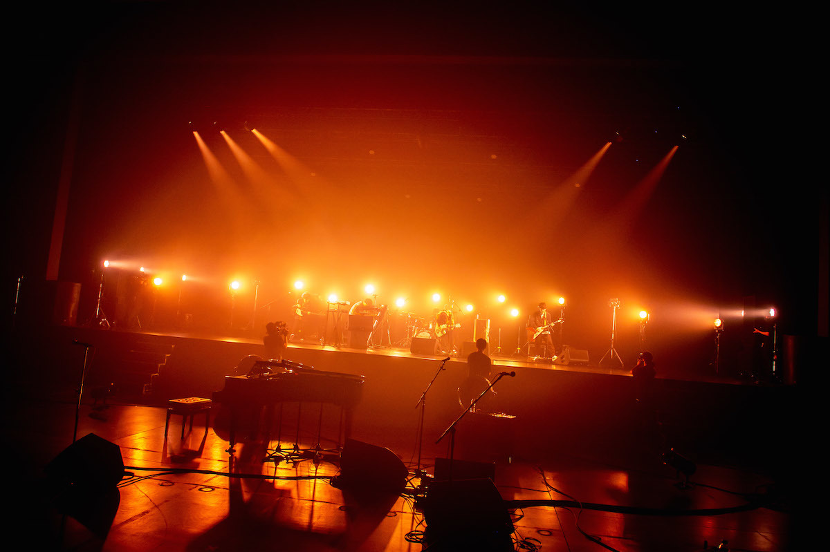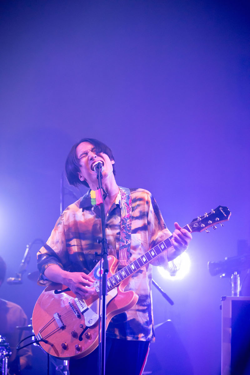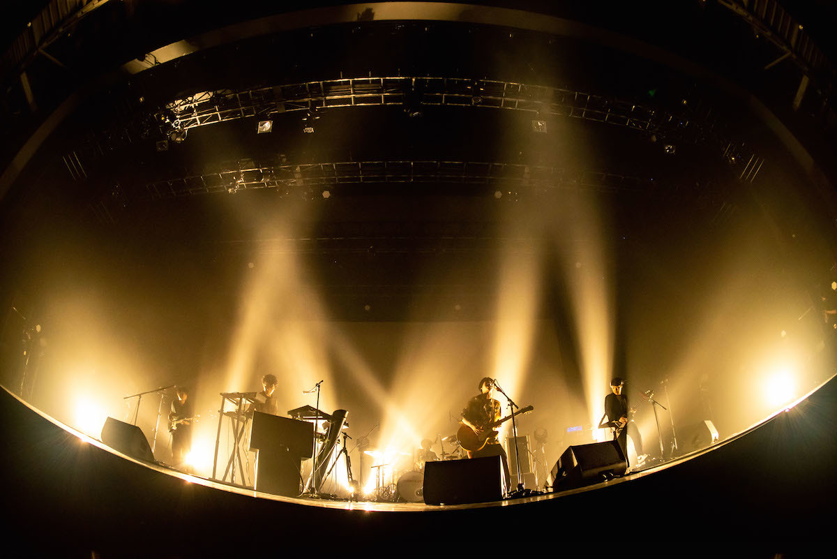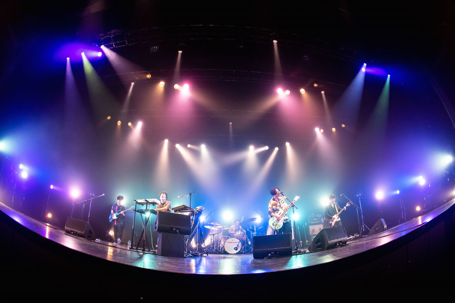 「ワンルームデイト」ではスクリーンに窓が映り、窓から見える空の色に合わせて照明の色も変化。さらに、「溶けない」ではガラスの破片が広がっていくような映像演出があるなど、このブロックでは、バンドの演奏と舞台演出のリンクが特に目立った。「溶けない」は7月に配信リリースされた最新曲で、基本形は8分の6拍子のミディアムバラードだが、途中で急にプログレ的な展開になる。このバンドが自らの軸としているグッドメロディと、ミュージシャンとしての好奇心や挑戦心。それらの両立が黄金のバランスで実現している。