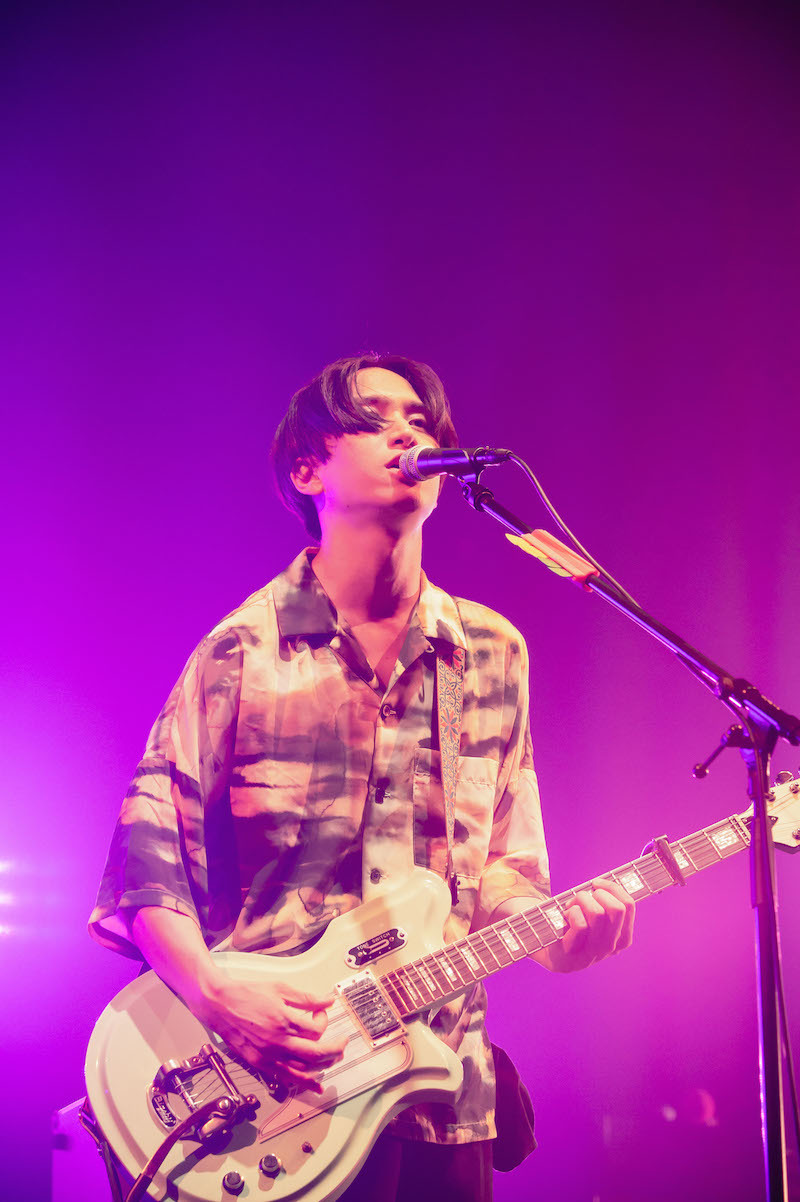 ステージで待っていた高浦がドラムソロで曲間を繋げている間に4人がステージに戻り、音源にもあのフィルインから「愛のレンタル」へ。フロアでの演奏が本人たち的にも充実していたのだろう、バンドはもう一段階調子を上げている。続く「洗濯機と君とラヂオ」はライブ定番曲だけあって、この場限りの遊び心も随所に見受けられた。