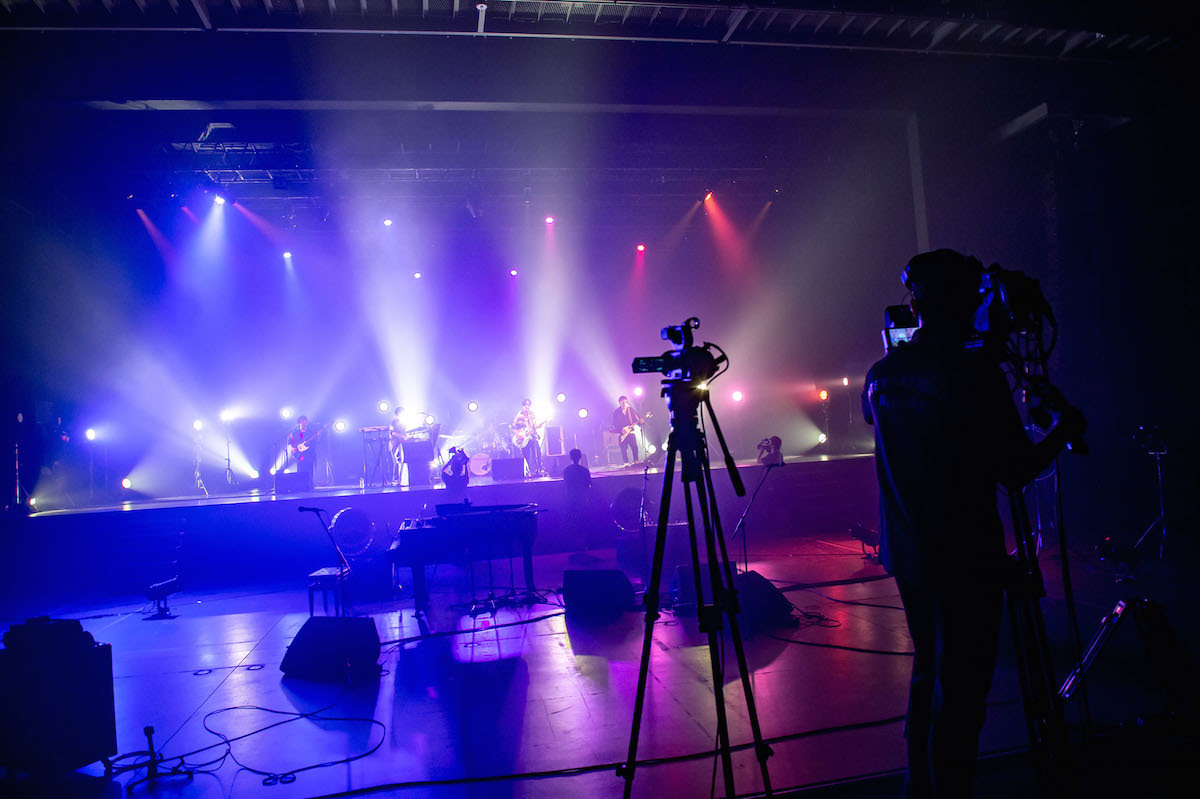 「今まで1回もやったことないアレンジでお届けします」と紹介された「春の嵐」は、歌とピアノのみで始まり、はっとりの弾くアコースティックギター(最近買ったビンテージもの)、そしてバンドのサウンドが合流していくアレンジ。失うのが怖い、それなら愛さずに終わった方がマシだ。そんなことを唄っている曲だからこそ、歌に灯った炎を分け合い広めるような演奏、輪になって音を鳴らすシチュエーションにグッとくる。一転、「いつまでも、いつまでも、いつまでも! あなたの大事な大事な逃げ場所であり続けたい!」(はっとり)と始まった初期曲「ハートロッカー」で急激にテンポアップすると、メンバーはじゃれ合うように音を合わせる。いたずらっ子のようなその表情をスタッフによる手持ちカメラが臨場感たっぷりに捉えた。