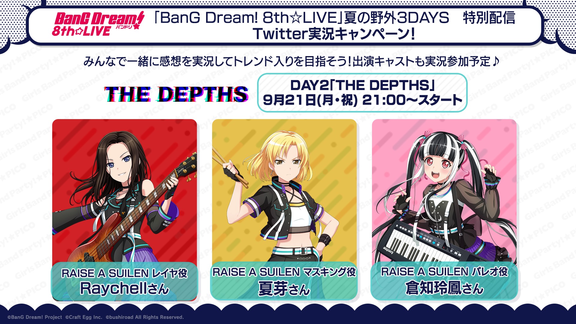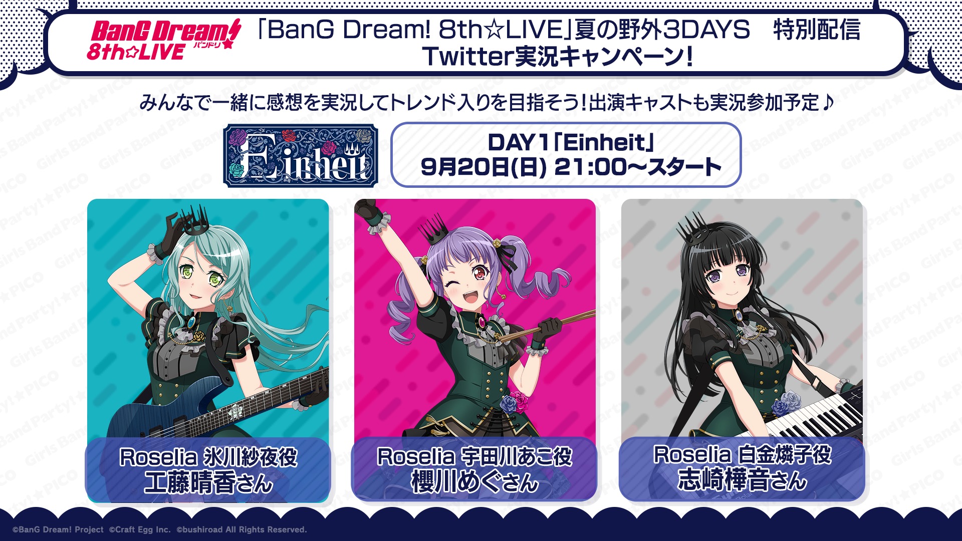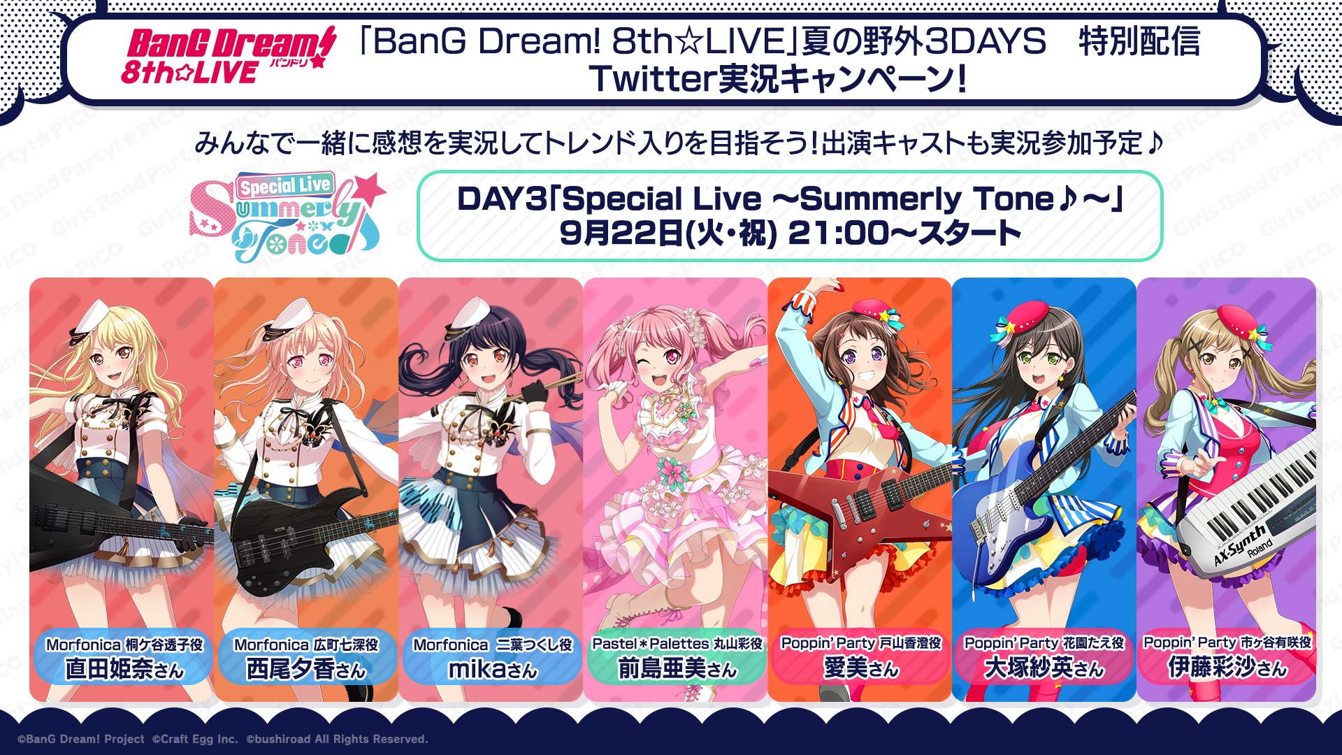 9月20日(日)から9月22日(火・祝)に行われる『BanG Dream! 8th☆LIVE』夏の野外3DAYS特別配信で、出演キャストによるTwitterでの実況が決定した。