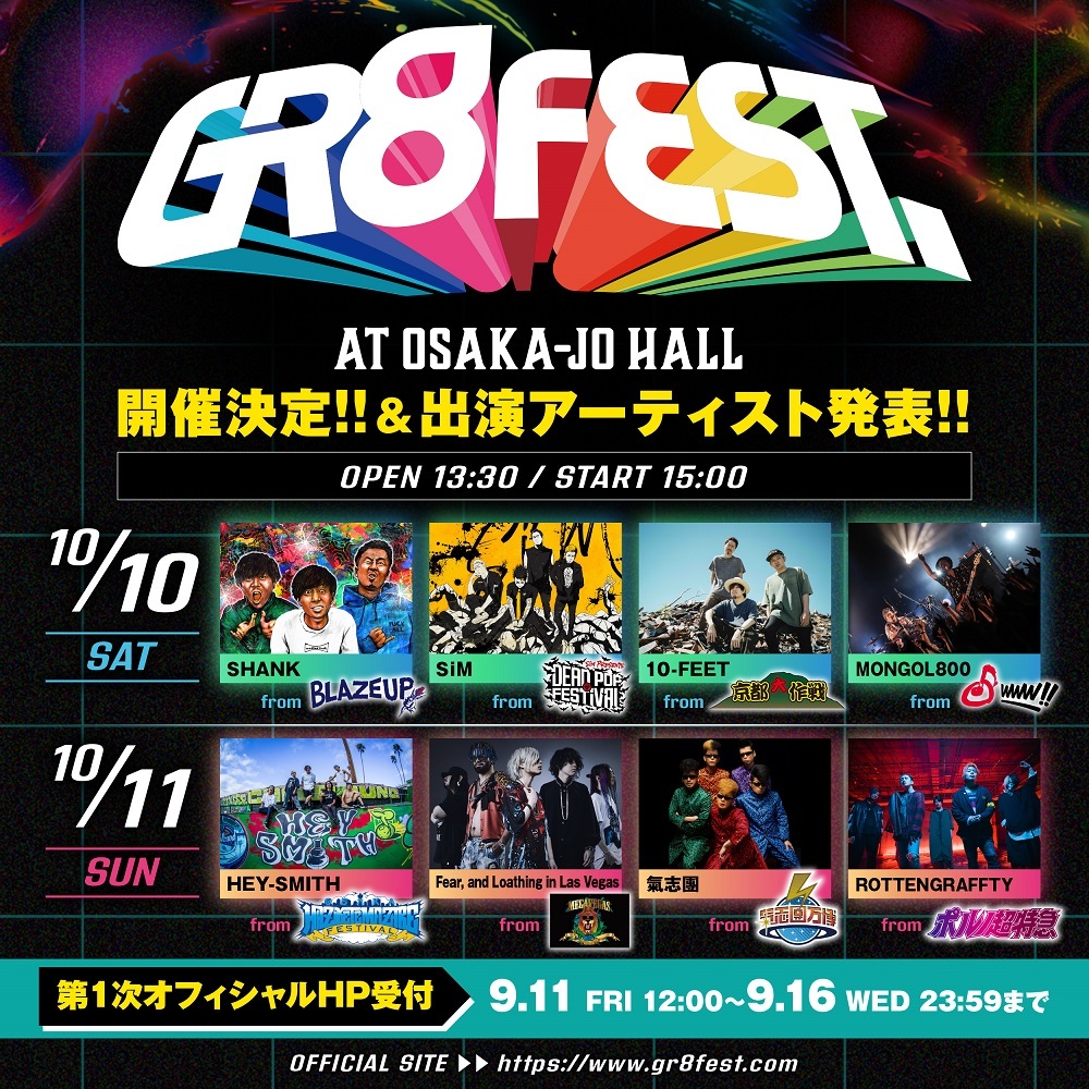 2020年10月10日(土)、11日(日)の2日間、大阪城ホールにて、音楽イベント『GR8 FEST.AT OSAKA-JO HALL』が開催されることが発表され、併せて出演者が発表された。