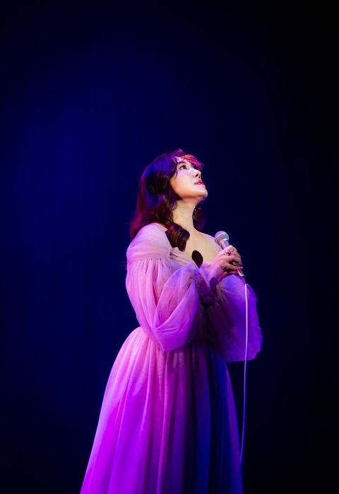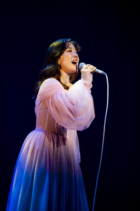 さらに「いのちの名前」「ソメイヨシノ」といった、改めて命に向き合うことについて考えさせられる歌を披露。「アランフェス協奏曲〜Spain」とファレル・ウィリアムスのカバー曲「HAPPY」でボーカリストとしての懐の深さをさらりと見せ、キャロル・キングの名曲「(You make me Feel Like) A Natural Woman」では、そのたくましい歌声が静寂の客席に響きわたった。「こんな世の中になっても忘れちゃいけないのは、心の豊かさだと思います。どうかをそれを忘れずに。」と短い言葉を挟んで早くも1部のラスト「明日」はこのコロナ禍でのさまざまな想いにすら寄り添う、大きな歌として届いたに違いない。
