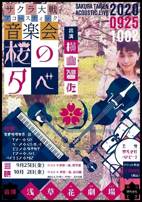 9月25日(金)と10月2日(金)に、浅草花劇場でサクラ大戦アコースティック音楽会「桜の夕べ」が開催される。生配信はe-plusの「Streaming+」で、各日2公演、全4公演を生配信する。
