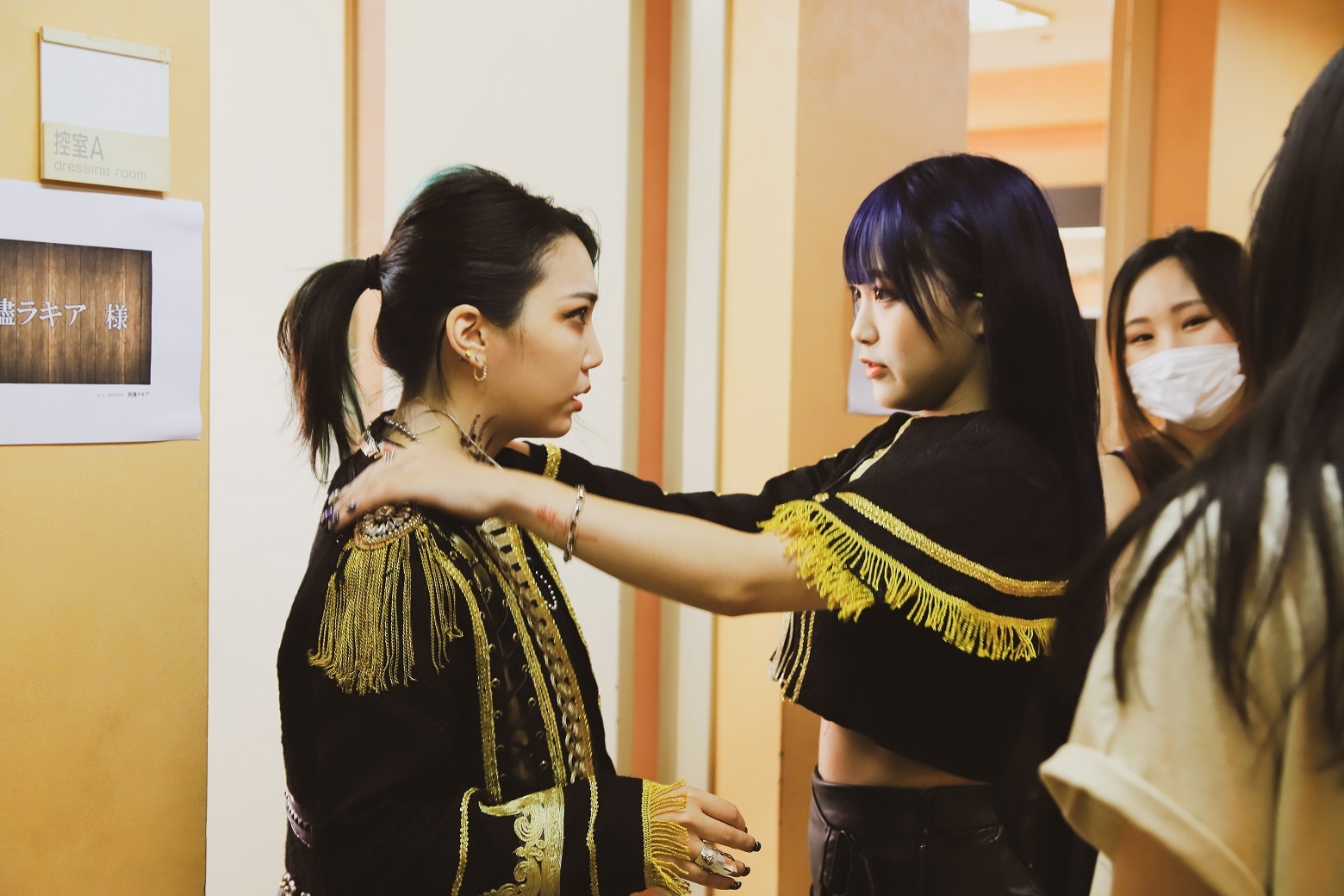 MIRI:例えば、学校の友達に夏休み明けに会うのって、変な緊張があったり、距離感があったりすると思うんですけど。ラキアのメンバーってそれが無くて。久しぶりに会っても昨日も会ってたみたいに話し始めると止まらなくて、ほんと家族とかに近い感覚なんだろうなと思ってます。よくスタッフさんとかに「ラキアってほんと仲良いね」って言われるんですけど、それを自分たちでも実感し始めてて。昨日も楽屋があるのに、クマ(星熊)が「一瞬寝るわ」って廊下のソファに出て横になってる時、私もなぜかケータリング持ってクマの隣で食べて。今度はトイレから戻ってきた海羽がしゃがんで喋り出したら、(川﨑)怜奈が「寂しいよ」ってお弁当持って出てきて。