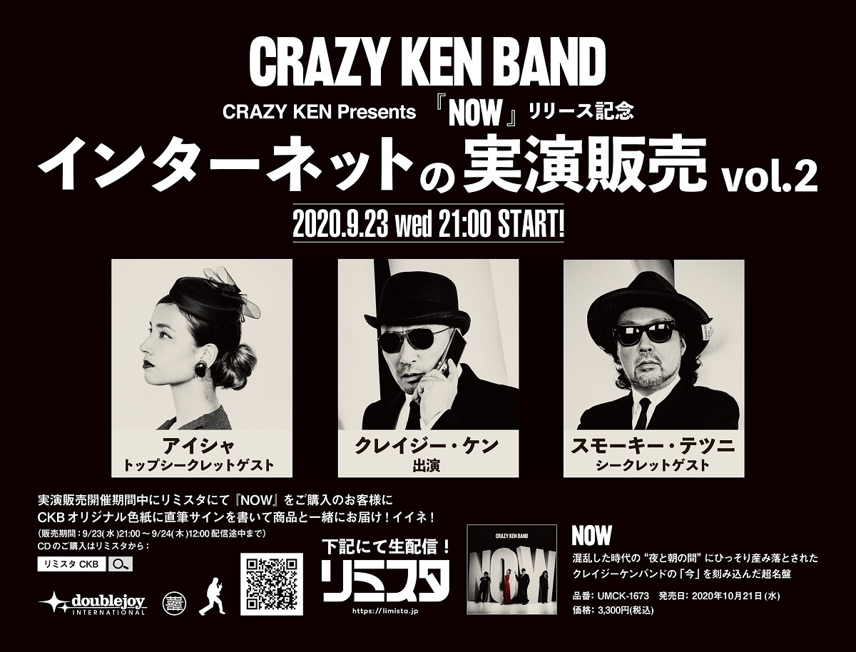 1年2ヶ月ぶりとなるニューアルバム『NOW』を10月21日にリリースするクレイジーケンバンドが、人気イベント『インターネットの実演販売』の第2弾を開催することを発表した。