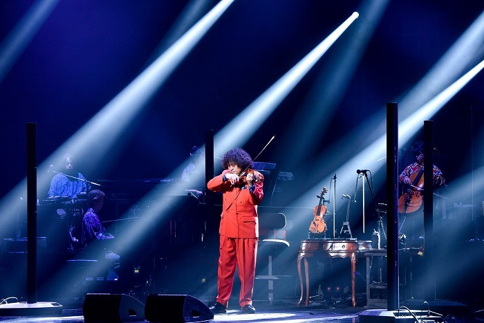 続いて、「Boys Be Ambitious」「Manta’s Song」「Ave Maria」を演奏。「Manta’s Song」で観客を見知らぬ豊かな土地へと誘い、「Ave Maria」ではクラシックの名曲をモダンなサウンドにクラシカルな奏法を調和させた葉加瀬ならではの新しいアレンジで“奥深い音楽の世界”へと導いた。
